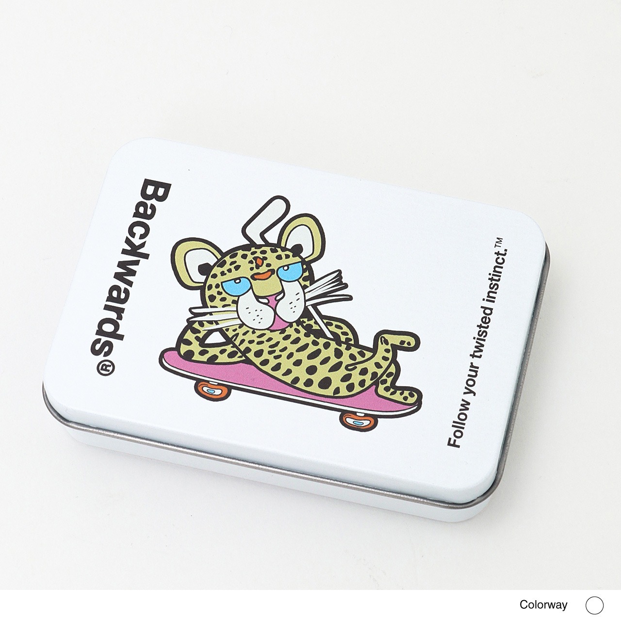 今季から登場したレイジー寝そべりスタイルCheethデザイン缶ケースに、Backwardsのロゴ入りのブラックベースウッドティーをセット。