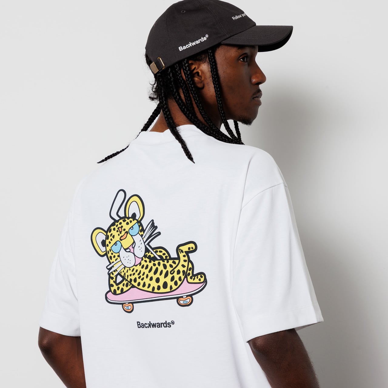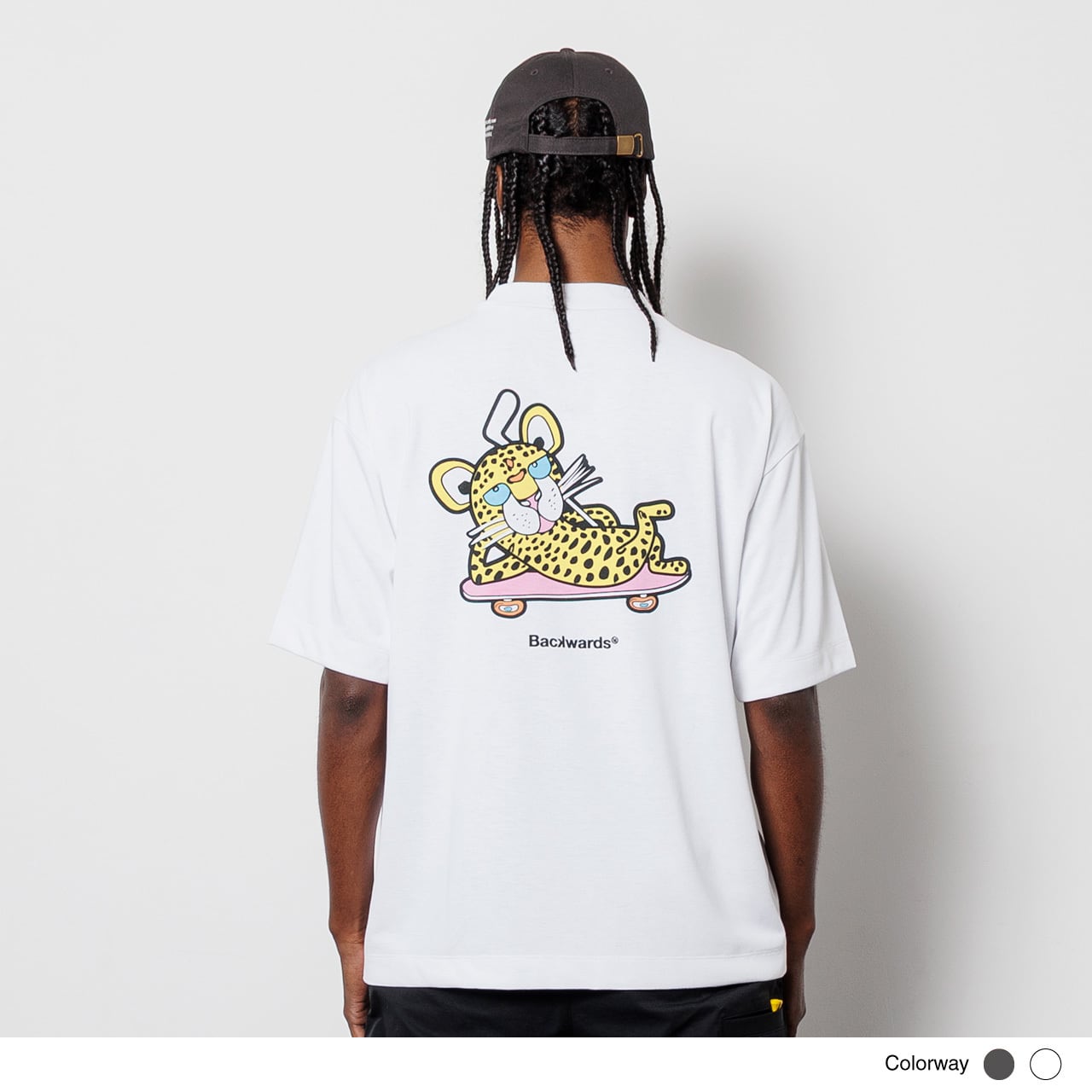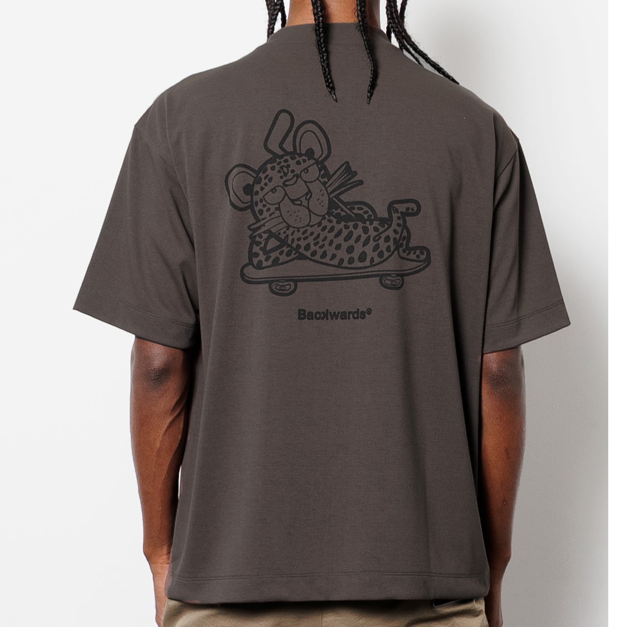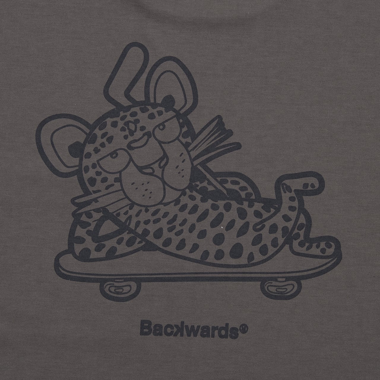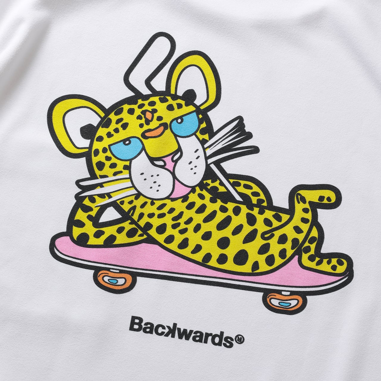・Backwardsのアイコニックなキャラクター「Cheeth(チース)」のこだわり染み込みプリント。