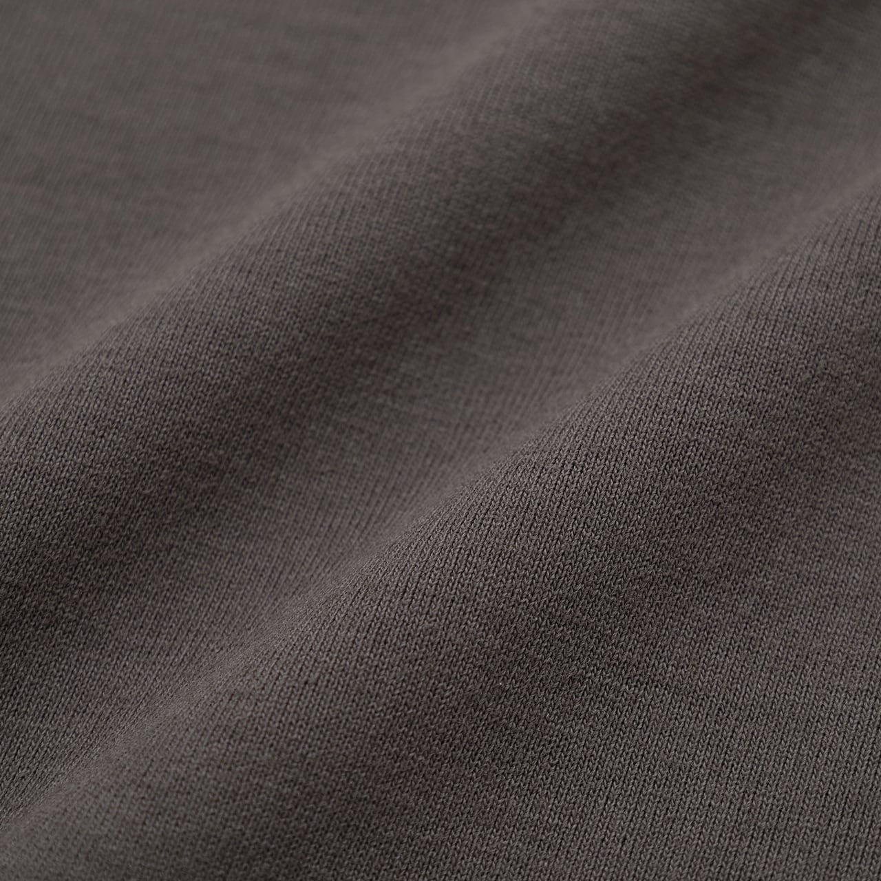 ・ポリエステル100%ながら、まるでコットンのようなナチュラルな肌触りと風合いを実現。カジュアルな太番手でドライな質感があり、度詰めに編み立てる事で適度な厚みとしっかりした手持ち感、透けにくさを付与。