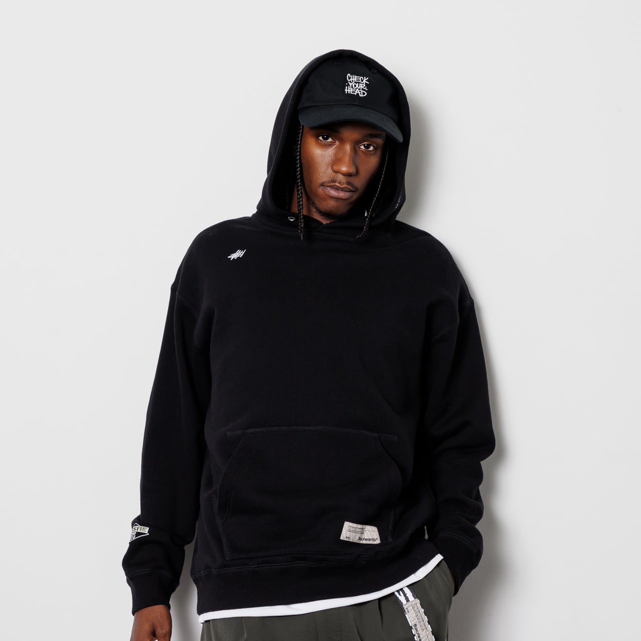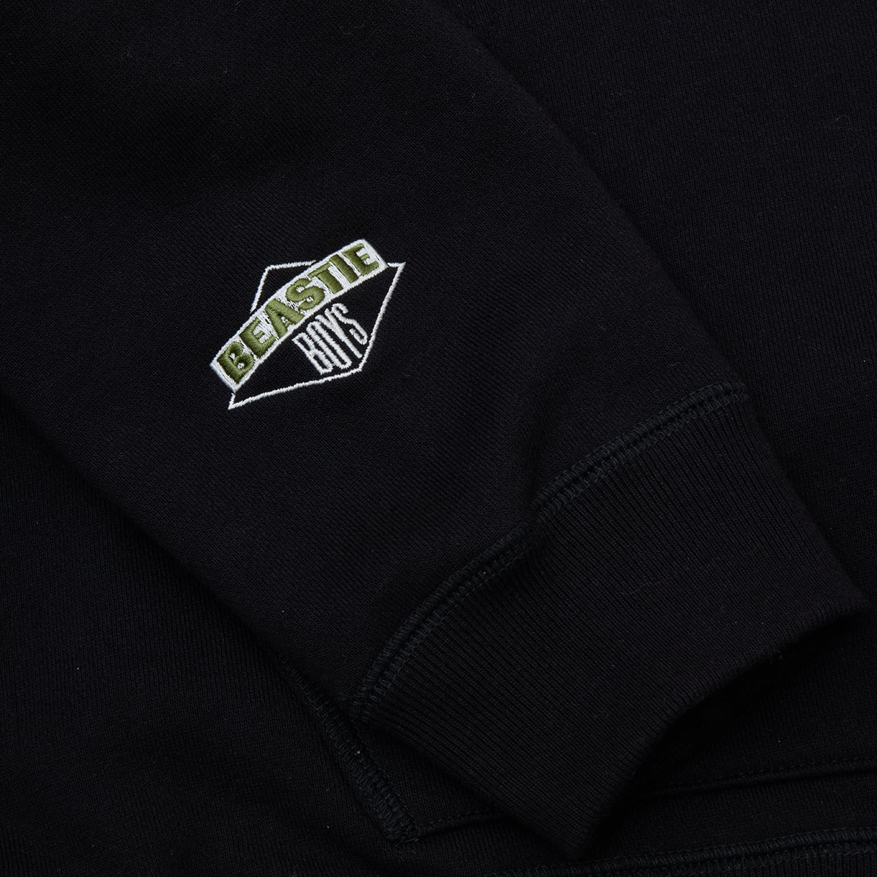 顔料とラバーの分量を緻密に調整し、古着のような独特の掠れた風合いを再現。フロントにはブランド定番のイニシャルタギング刺繍を配しつつ、バンドの象徴的なグラフィックを随所にセット。袖にはダイヤモンドロゴを刺繍。バックには、Def Jamクリエイティブディレクター兼ライターであるCey Adamsがバンドのために壁に描いた初期のグラフィティをプリント。フードには、1stアルバムリリース時のクリエイティブをサンプリングしたタイポグラフィを刺繍。
