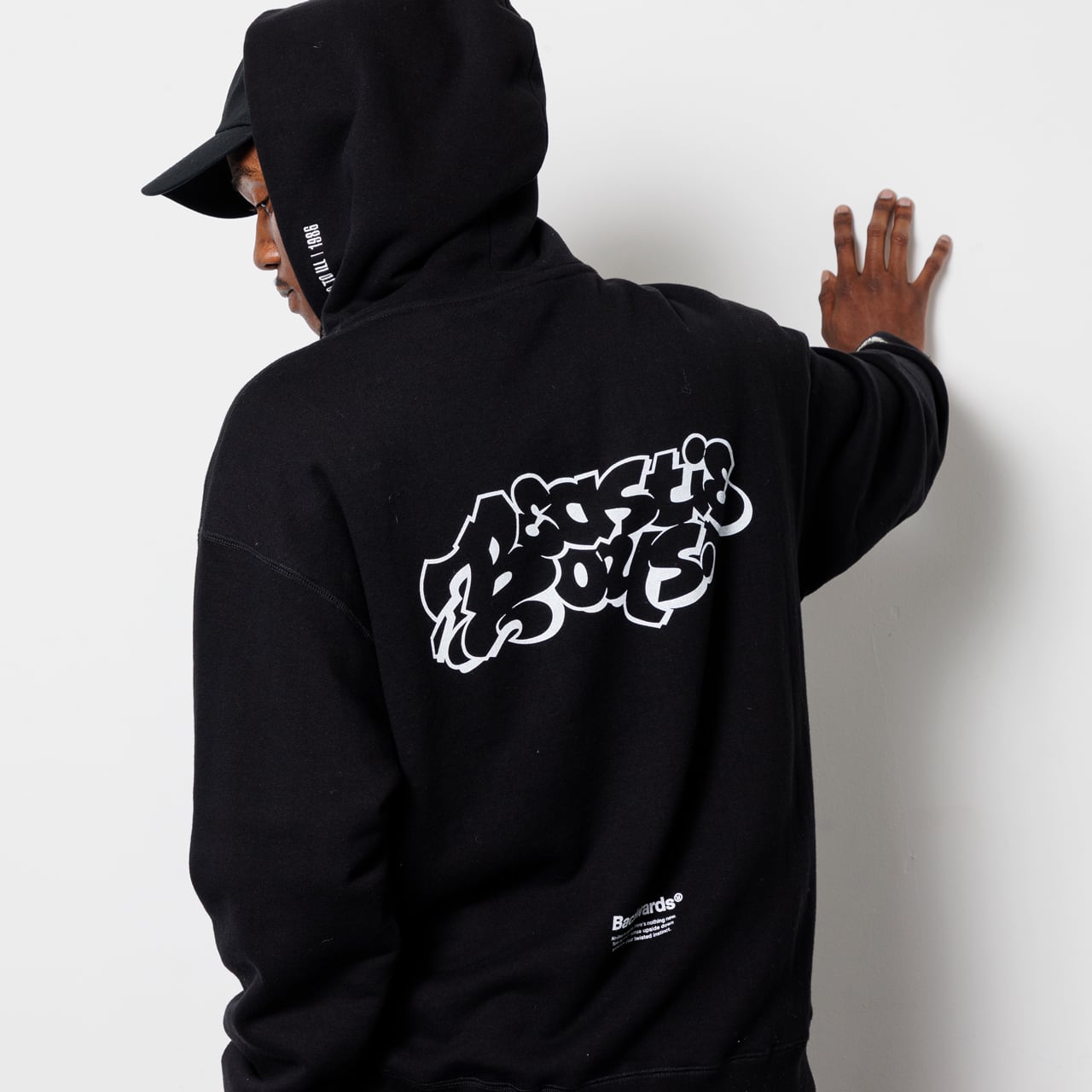 袖・フード・背面に施されたBeastie Boysの象徴的グラフィックが、カルチャーと機能性を融合させた一着に仕上げています。