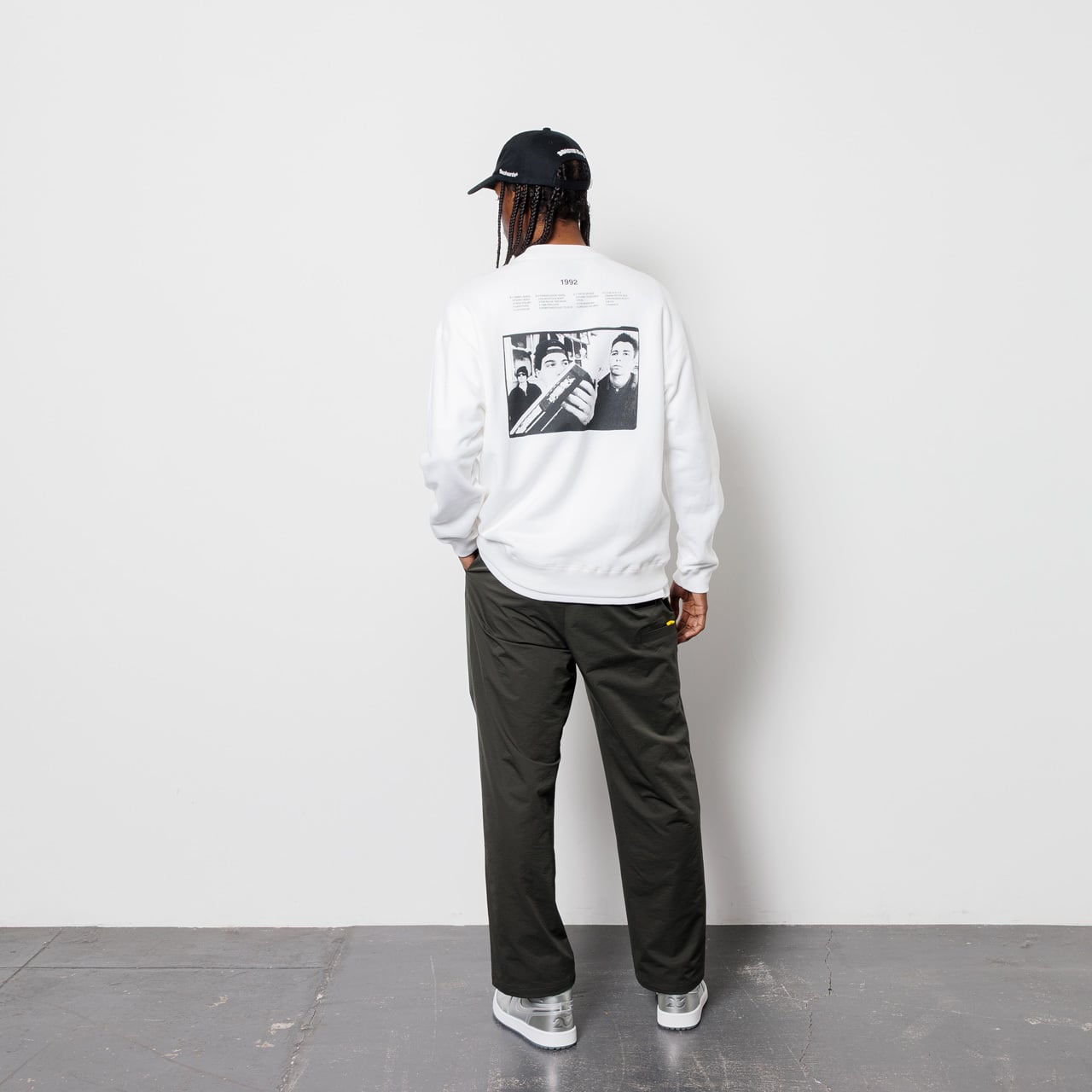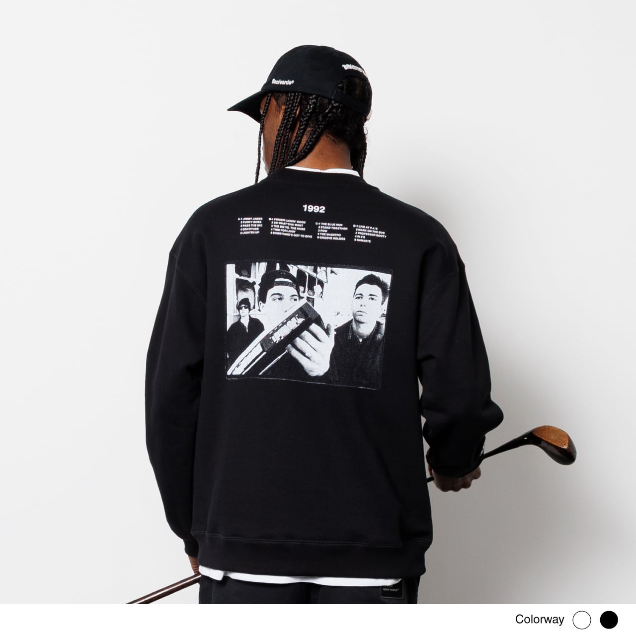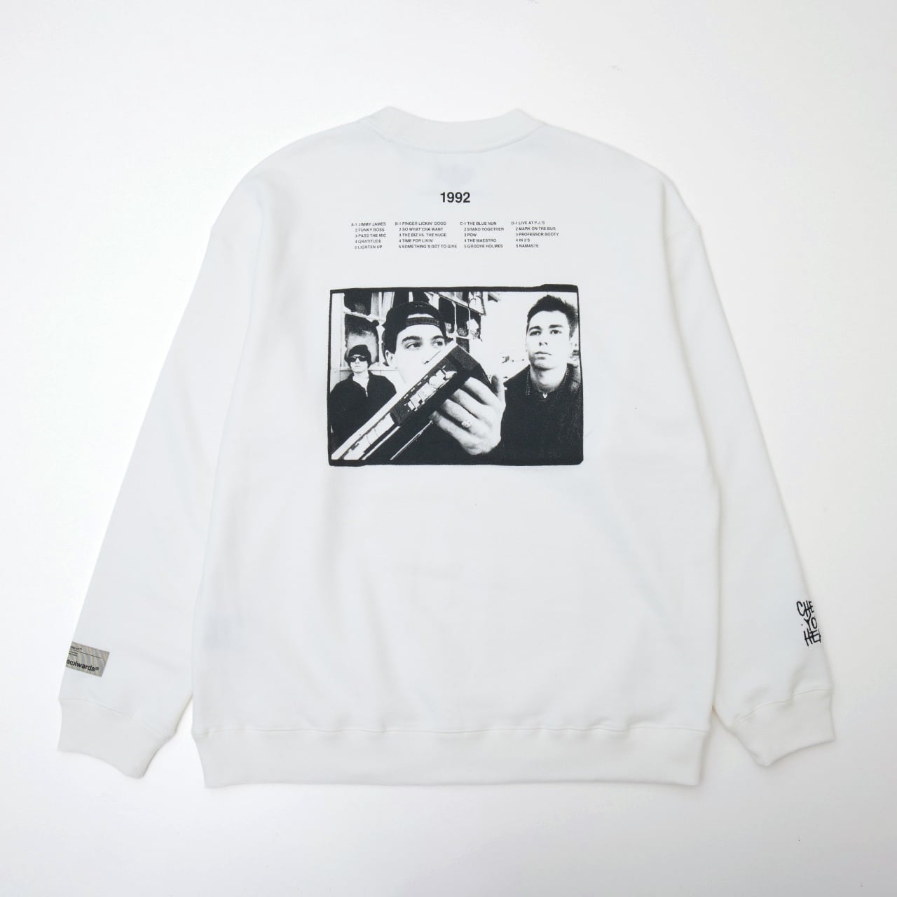 多くの支持を集めたBackwards × Beastie Boysのコラボクルースウェットが、同デザイン・同仕様で再登場。Eric Hazeによるグラフィティ刺繍や、Check Your Headの2LPセットリストを背面にプリント。希少なヴィンテージ裏毛が生む、古着のような掠れ感と柔らかな膨らみ。3シーズン快適に着用できる一着です。
