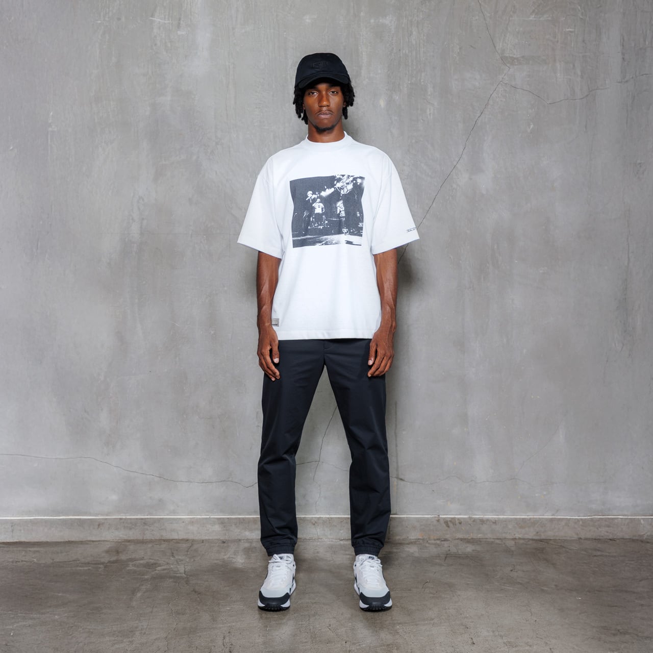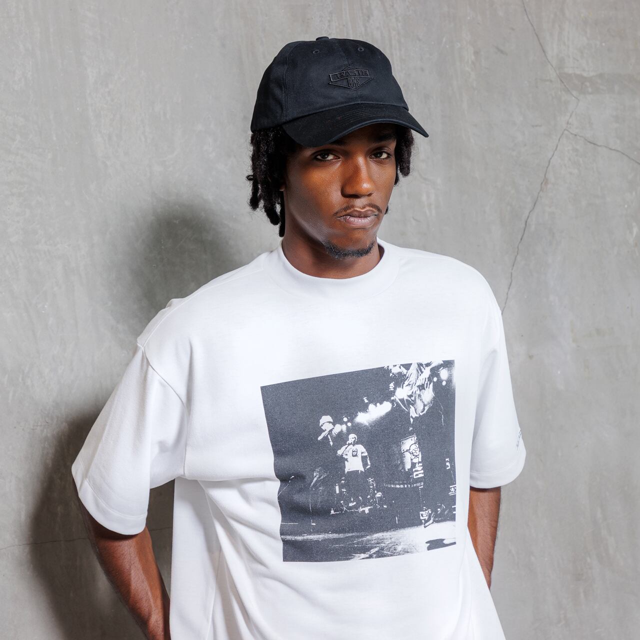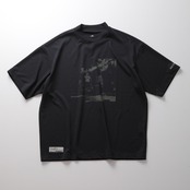 コットンのような自然な風合いとドライな質感を備えた、ポリエステル100%のセミモックネックシャツ。吸汗速乾・UVカット機能に加え、肌離れの良い表面設計で快適性を追求。肩周りの可動域を考慮したパターンとリラックスフィットがスイングを妨げず、快適なゴルフプレーが可能。フロントにはライブステージのショットを、背面にはロゴとトラックリストをプリント。古着のような掠れ感を再現した独自技法が、通気性と個性を両立します。