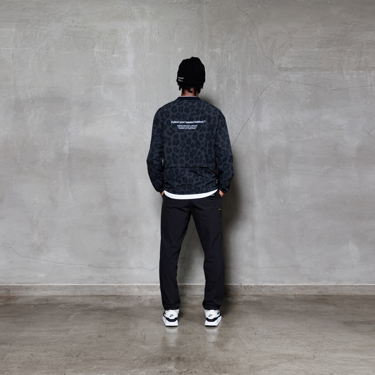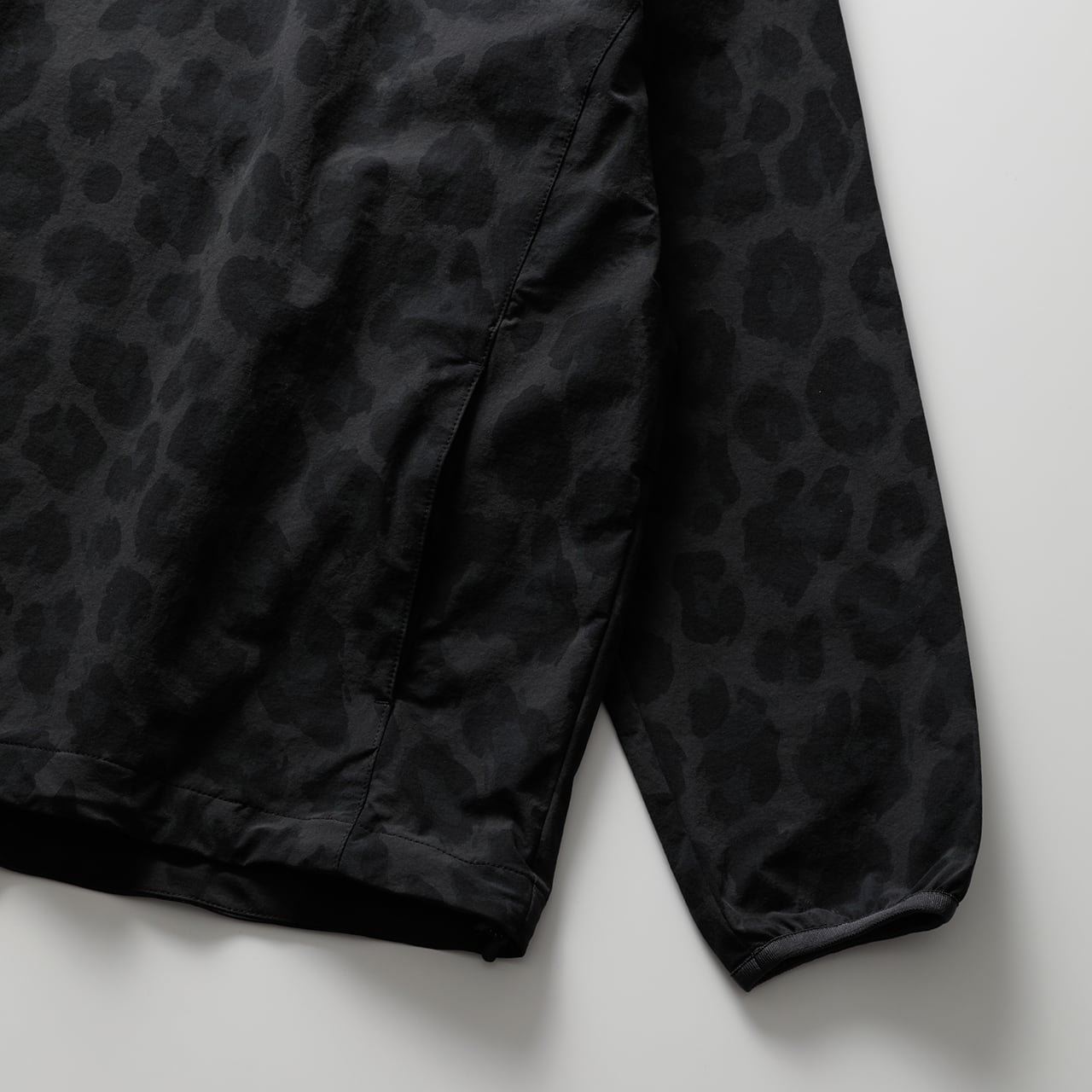 トーナルレオパードの総柄が、静かな存在感を演出。風合いとシボ感を保つダイレクトインクジェット加工を採用。撥水性、通気性、TEE差しループ、グローブホルダーなど、プレーを支える機能も網羅。