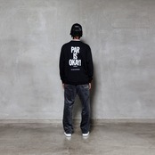 1969年の反戦広告に着想を得た、タイポグラフィを背面にプリント。センターにはボールドロゴ刺繍を配置。顔料×ラバーの絶妙な配合で、古着のような掠れ感を再現。空気を含む編み立てと3本針縫製で、着心地にもこだわった一枚です。