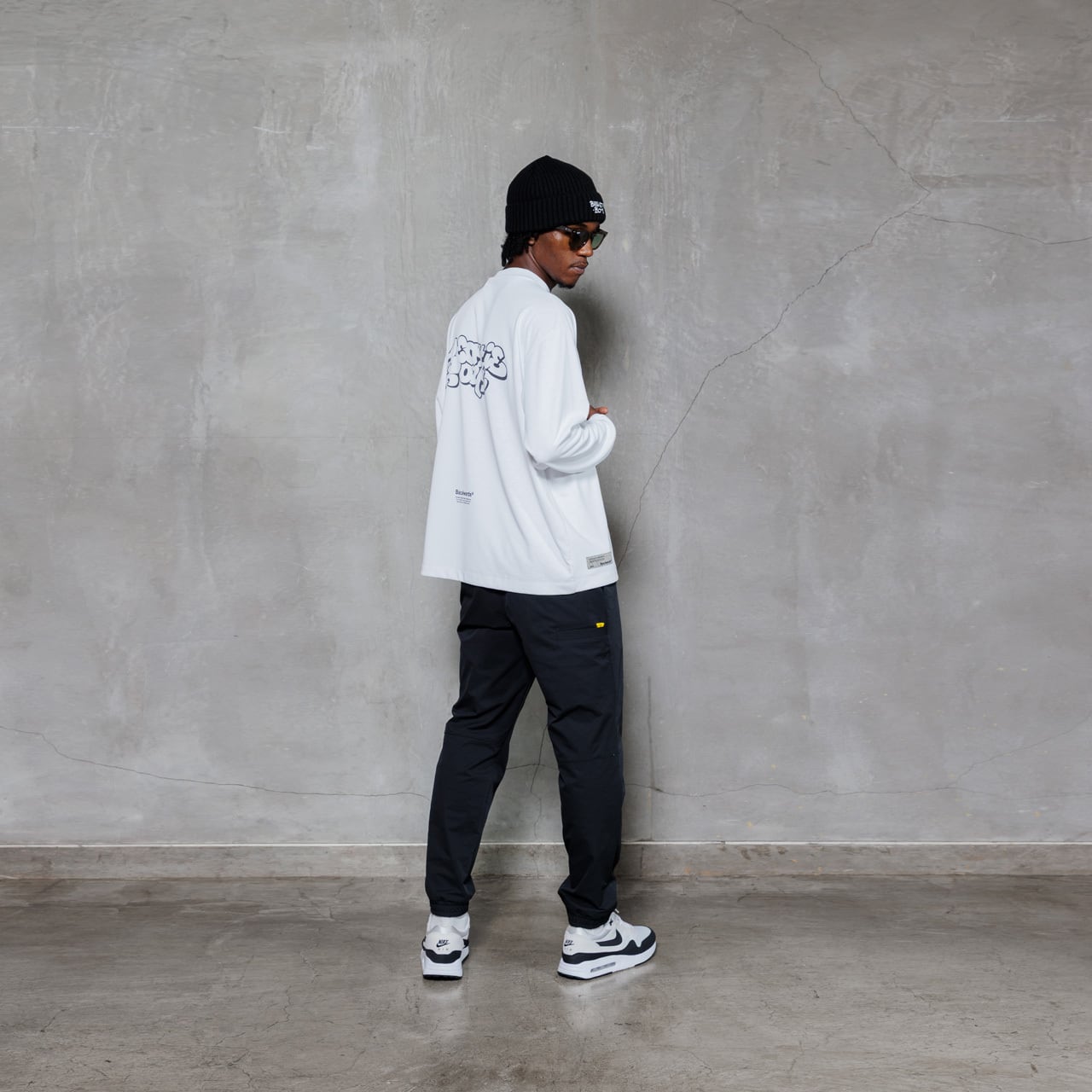 Def Jamの伝説的クリエイターが描いた初期グラフィティを大胆にバックプリント。コットンライクな肌触りながら、吸汗速乾・UVカット・通気性を備えた高機能素材を採用。肩周りの可動域や袖丈バランスにも配慮したリラックスフィットで、快適なスイングをサポート。環境配慮型リサイクルポリエステル製。
