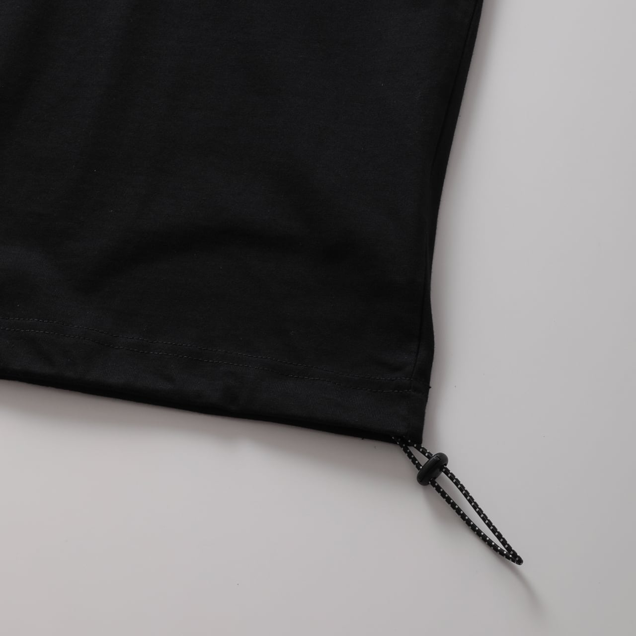 ・ドロップショルダー/ワイドチェストのオーバーサイズながら、裾のスピンドルでシルエット調整することが出来、様々なボトムに合わせられる万能Tシャツです。
