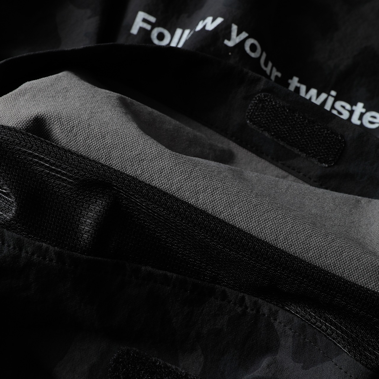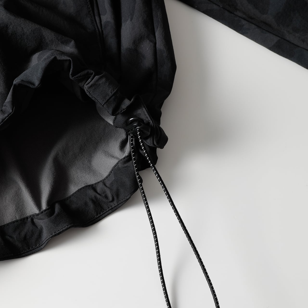 ・裾にはゴムスピンドルが内蔵され、風の巻き込みを防ぐ機能に加え、シルエット変化も楽しめます。