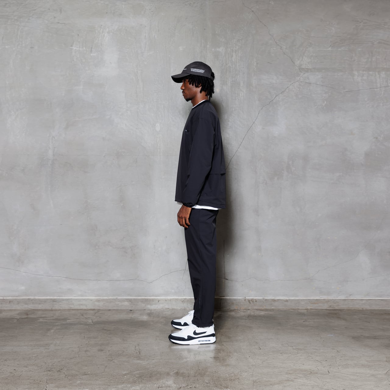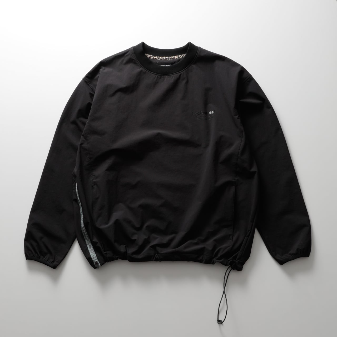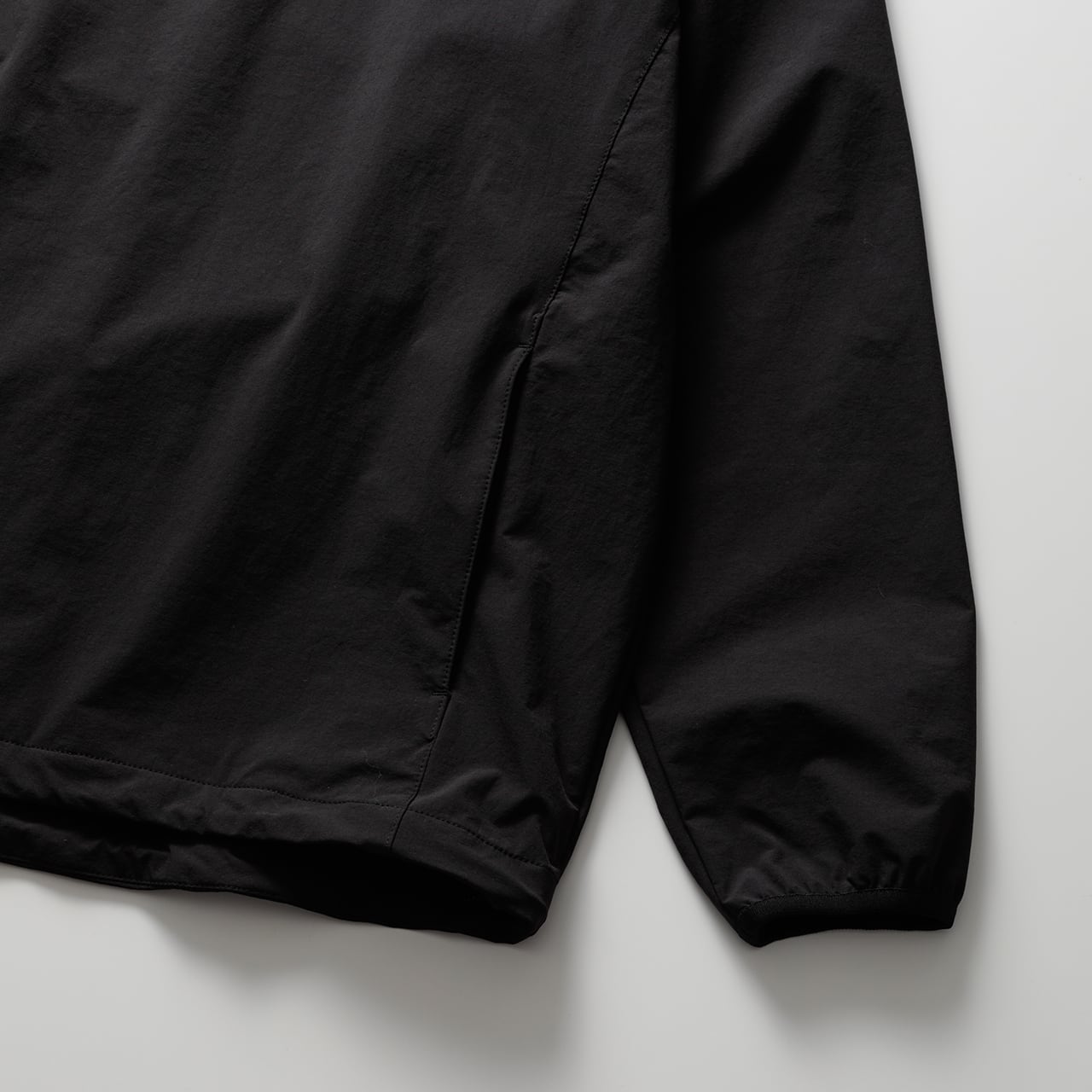 ブラックのミニマルなデザインに、レオパード柄ファスナーがアクセント。モックネックに馴染むネック設計。TEE差しループやグローブホルダーでプレーを快適に。撥水加工×ベンチレーションで通気性も確保。