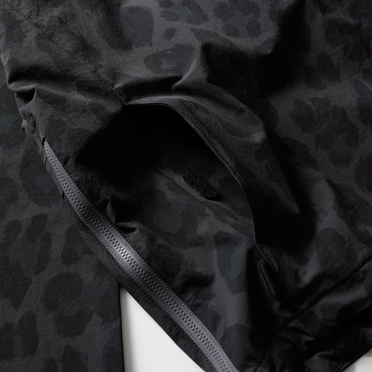 ・リサイクルナイロンを使って高いストレッチ性と耐久性を持たせたソフトシェル素材を採用。凹凸組織になった裏面が肌との接触を減らし、張り付かず快適な着心地を実現。