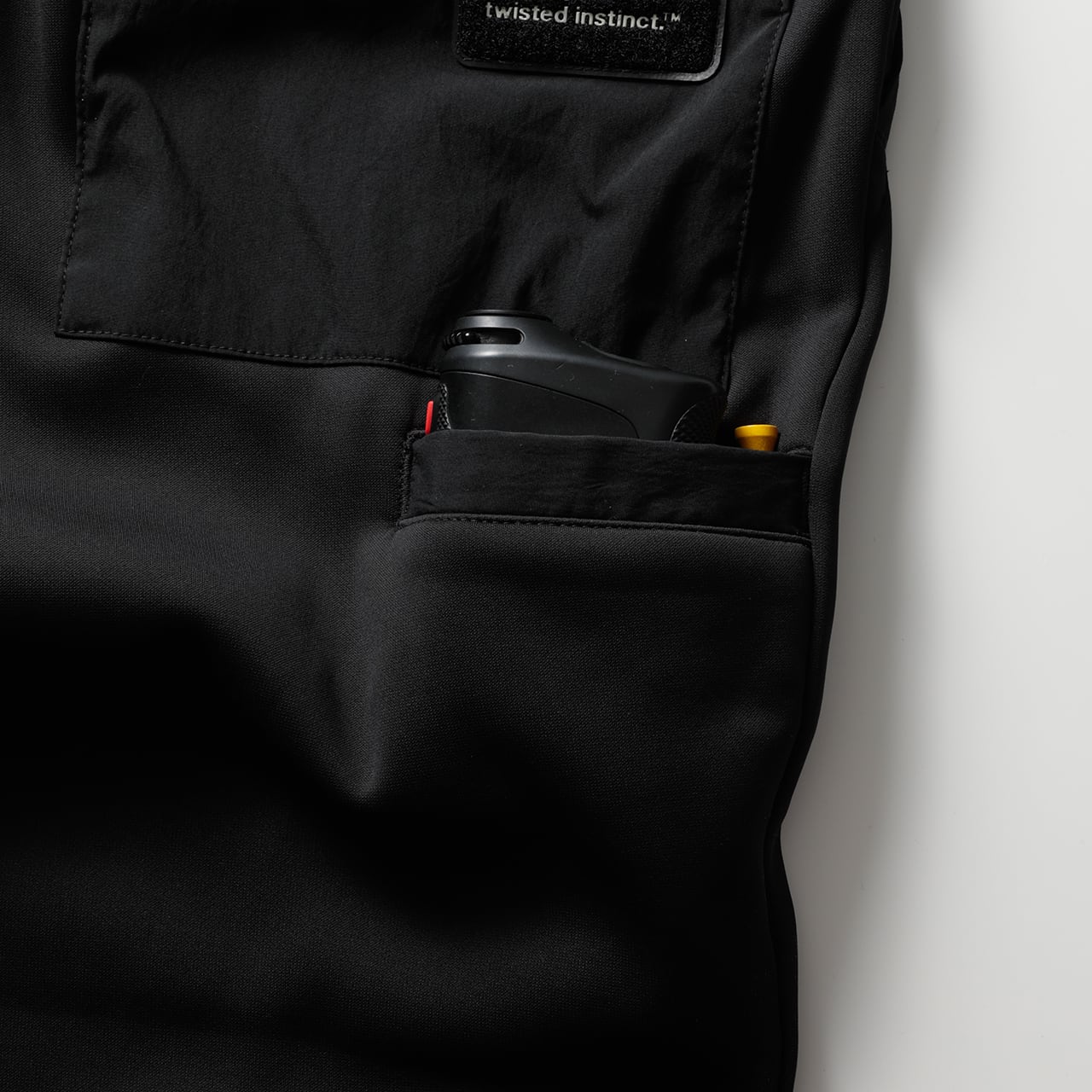 ・フロントポケット口、ヒップの大型パッチポケットには高強度の別布を使用。着用による摩擦が多い箇所を補強してダメージを軽減します。