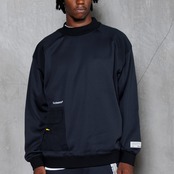 ・だらしなくならない程良いオーバーサイズシルエットを追求し、身巾/肩巾にゆとりをもたせつつプレイを考えた長すぎない着丈と袖丈がポイント。
