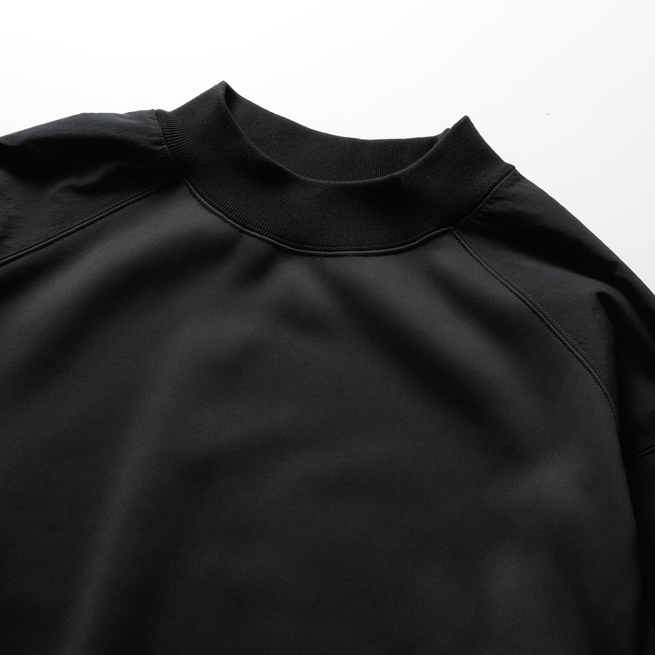 ・インナーの衿型にこだわらずラウンド可能なモックネックタイプのミドラー。首周りは緩めながらしっかり立ち上がるこだわりの衿型と型崩れしずらいリブ仕様で、快適な着心地ときちんと感を両立。