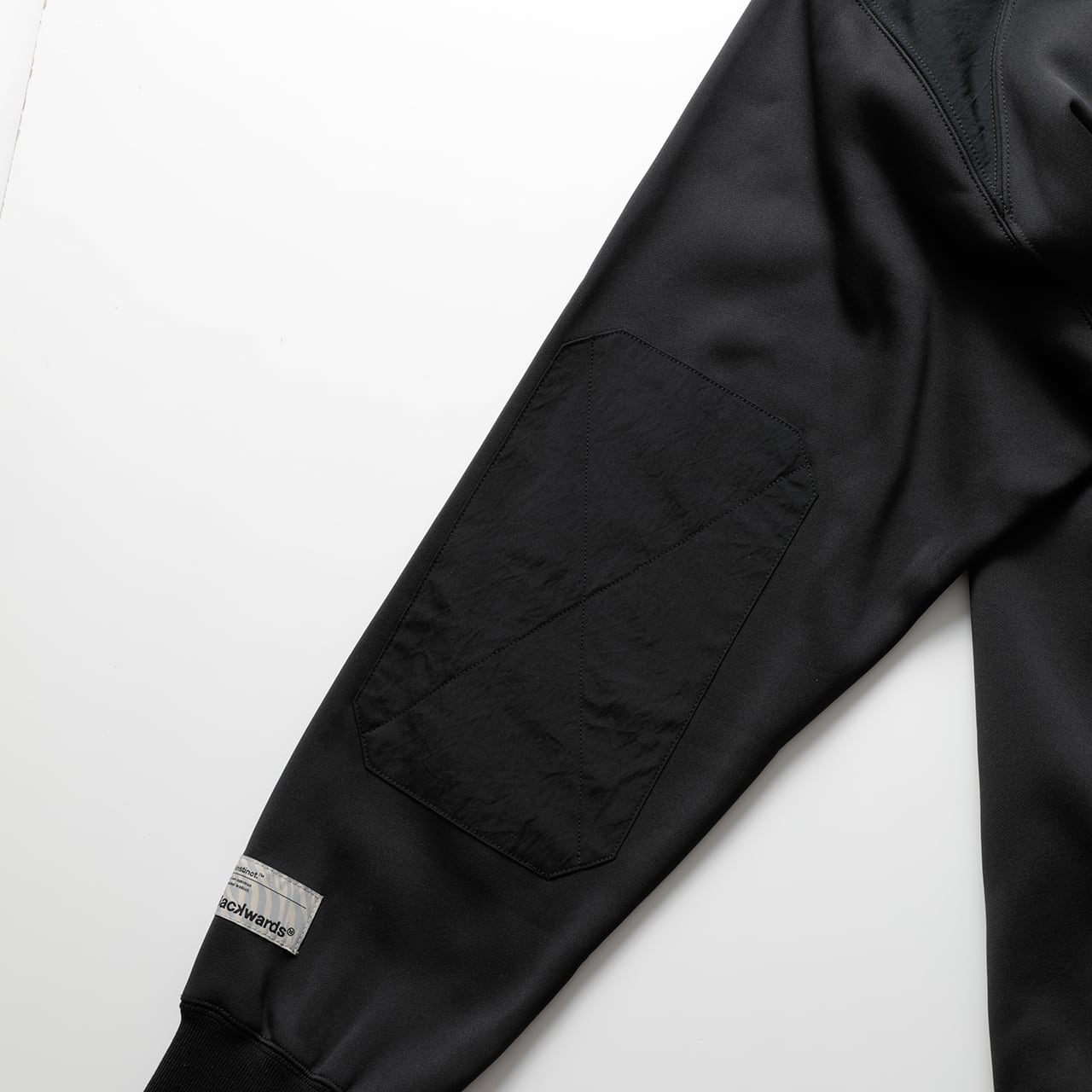 ・キャディバッグによる摩擦が多い肩周り、肘には補強の別布を乗せ付け。ストレッチが効いているので可動域を制限しません。