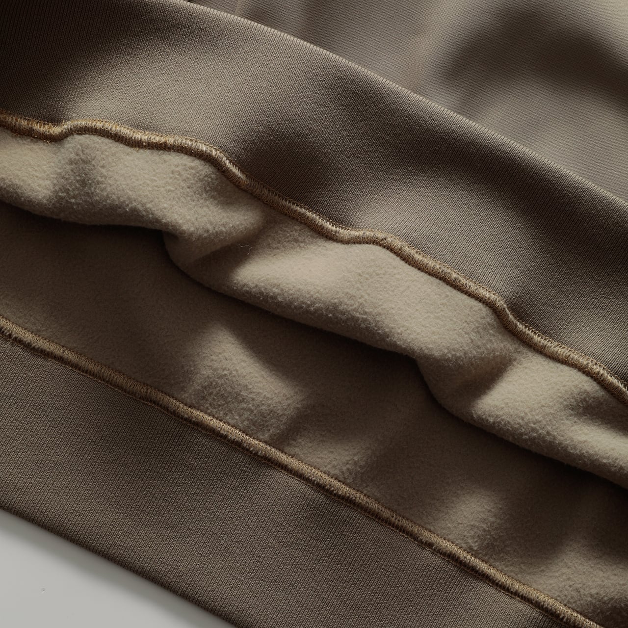 ・ハイゲージ組織できめ細かい裏起毛、通気は確保しつつしっかりと保温します。