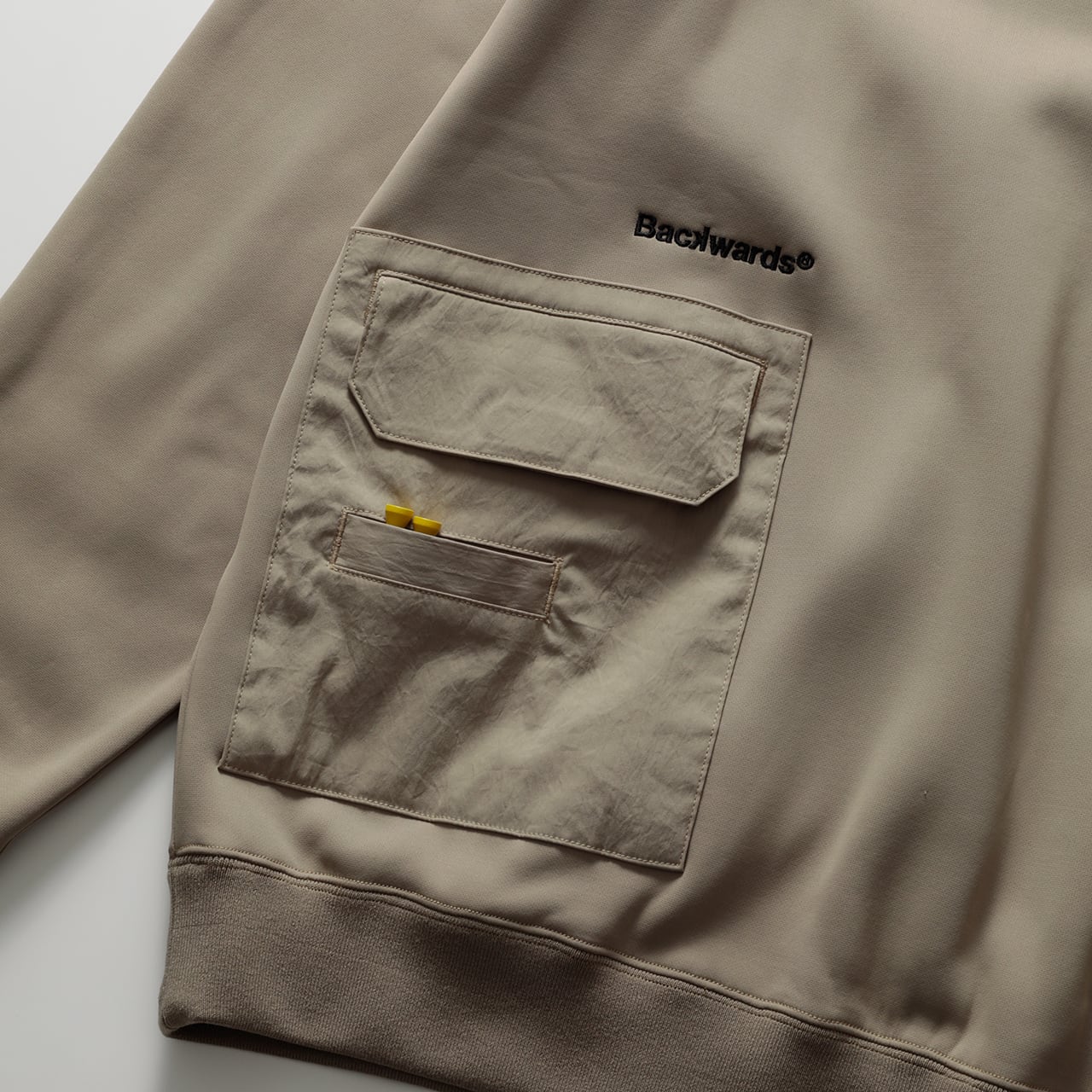 ・特殊3層構造で、超軽量かつスウェットライクな肉厚とハリ感を持たせています。