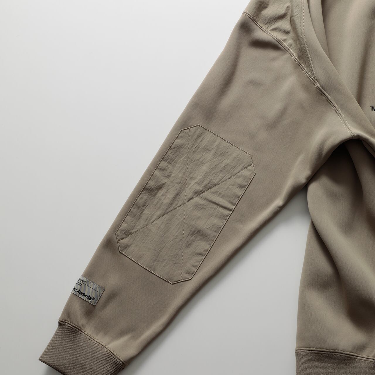 ・キャディバッグによる摩擦が多い肩周り、肘には補強の別布を乗せ付け。ストレッチが効いているので可動域を制限しません。