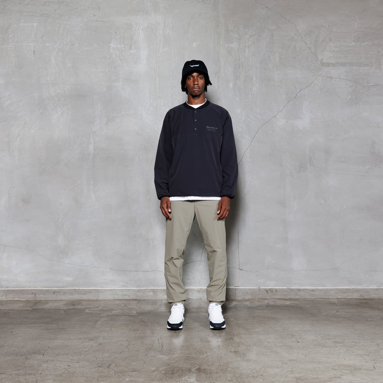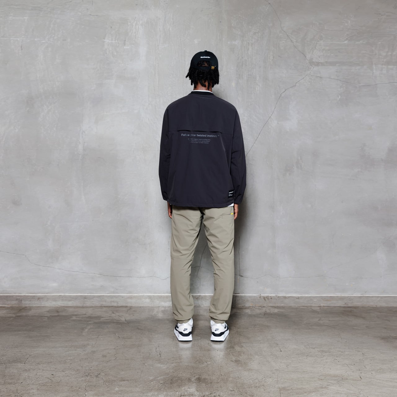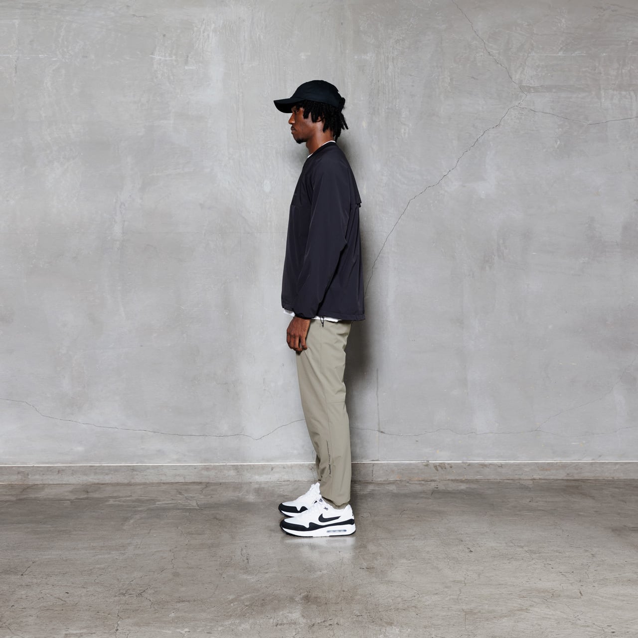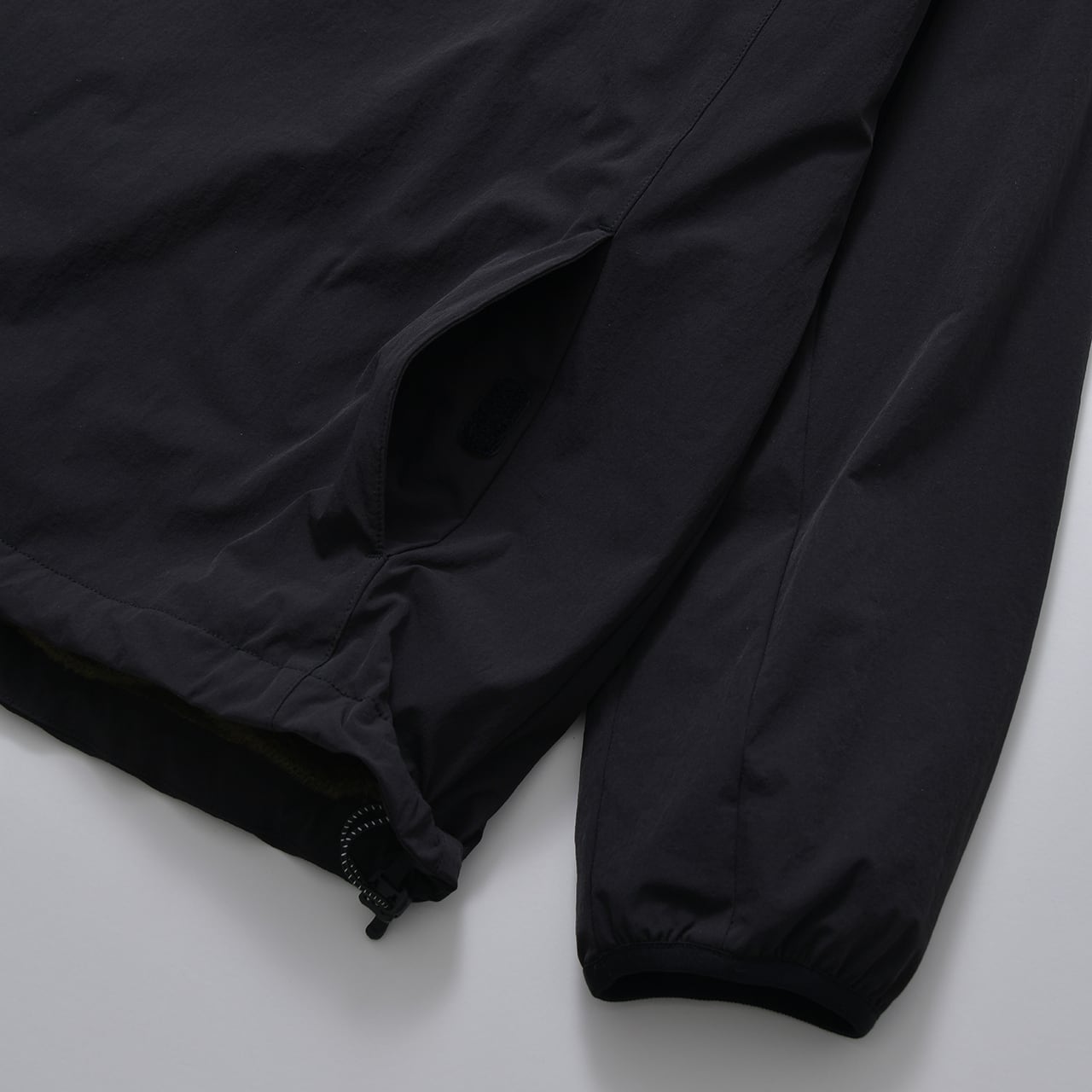 ・裾脇にセットされたファスナーにより、布帛プルオーバーの弱点である着脱のしづらさを解消。ソリッドブラックにはアクセントとなるレオパード柄のファスナーを使用。
