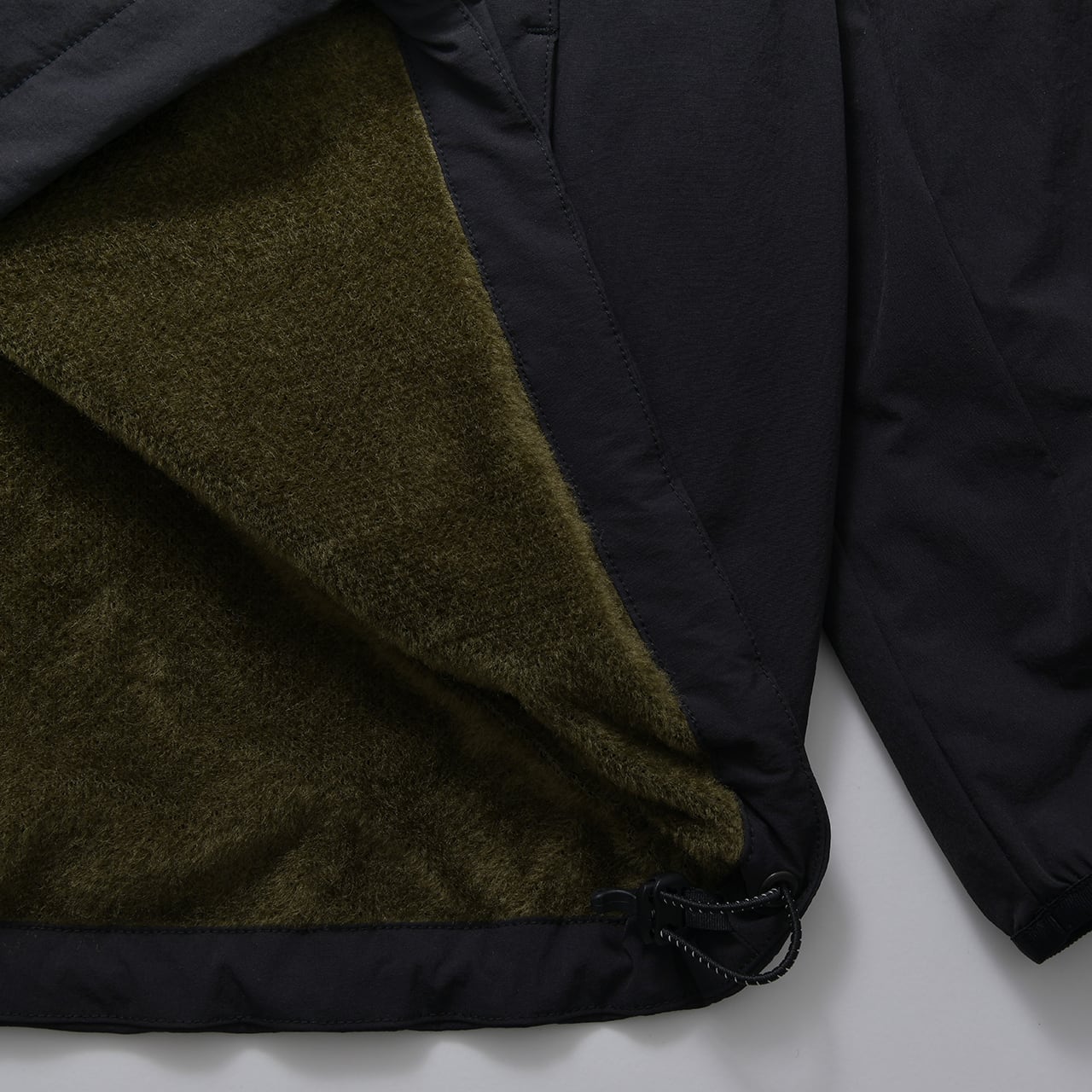 ・裏地のOCTAファブリックは、起毛面/メッシュ面を袖と身頃で切り替えて配置。スムーズな着用と保温機能を両立させています。