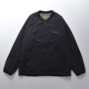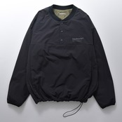 ・モックネックとの着合わせを前提にした、だらしなくならない絶妙なネックラインのスニードジャケットに、フロントボタンを追加。着脱しやすくトレンド感あるハーフスナッププルオーバーです。