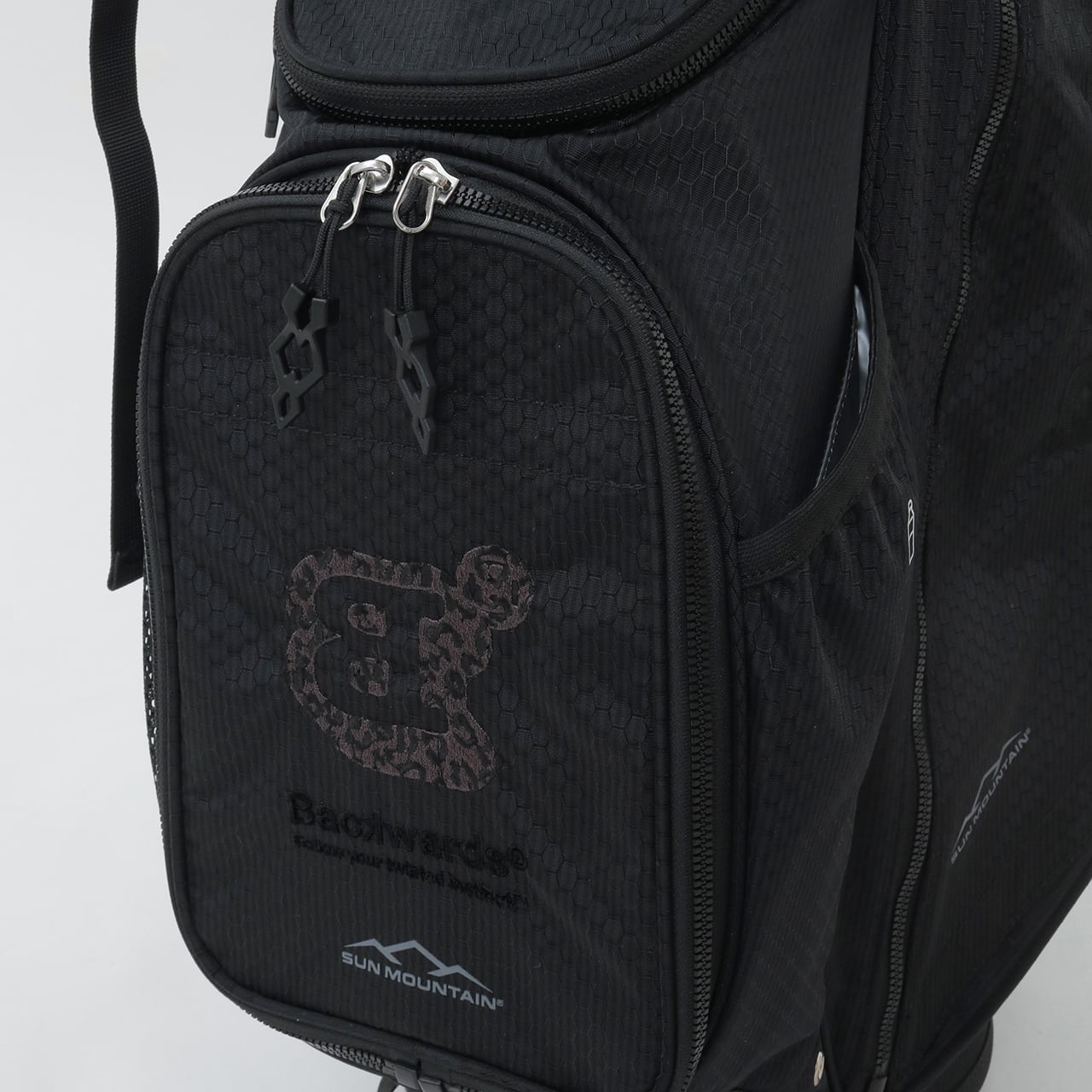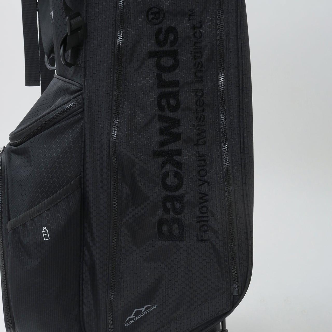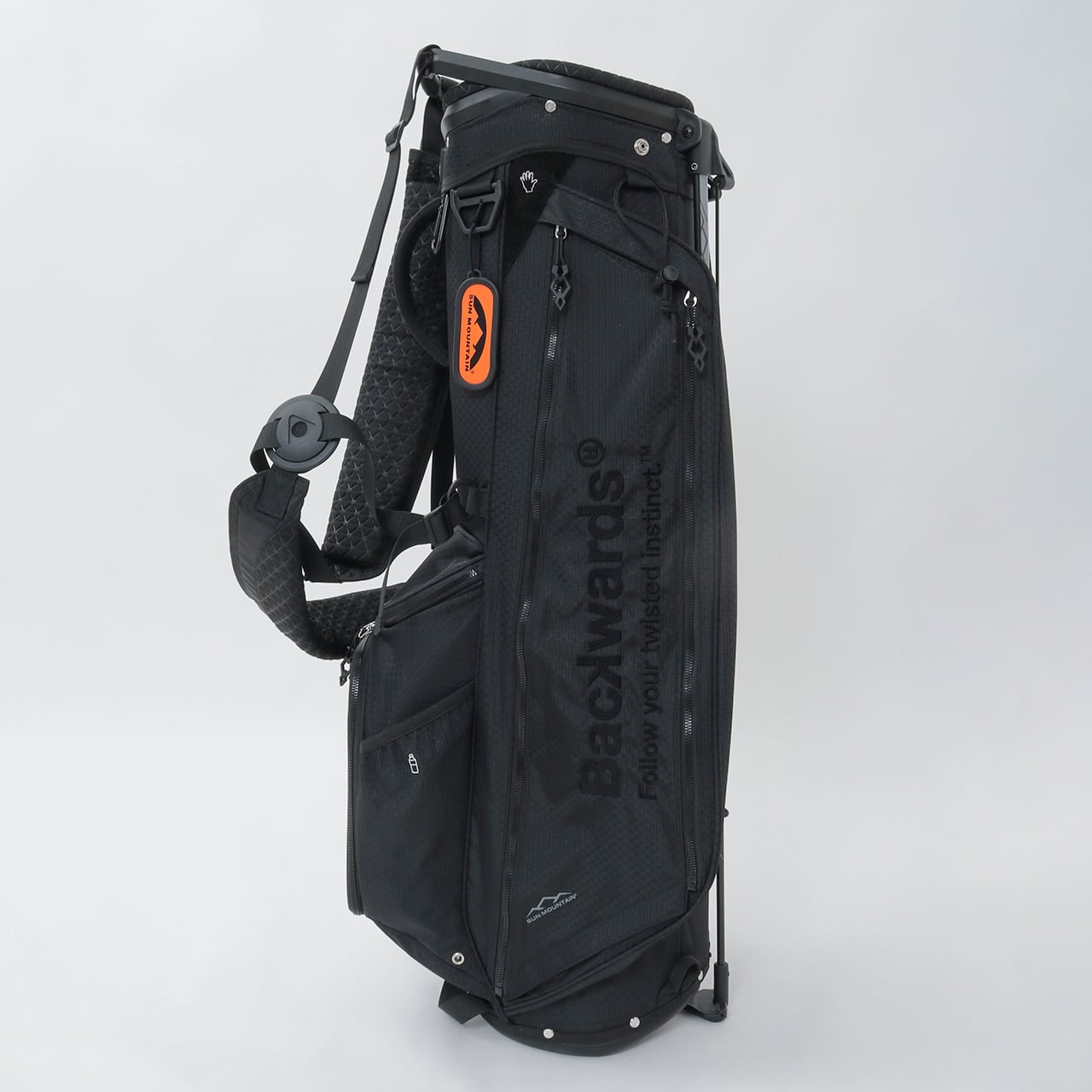 Backwards初のキャディバッグ。Sun Mountain製モデルにBackwardsのデザインを加えた1本です。高い耐久性と耐候性を備えながら、わずか2.2kgの軽さを実現した特別仕様です。