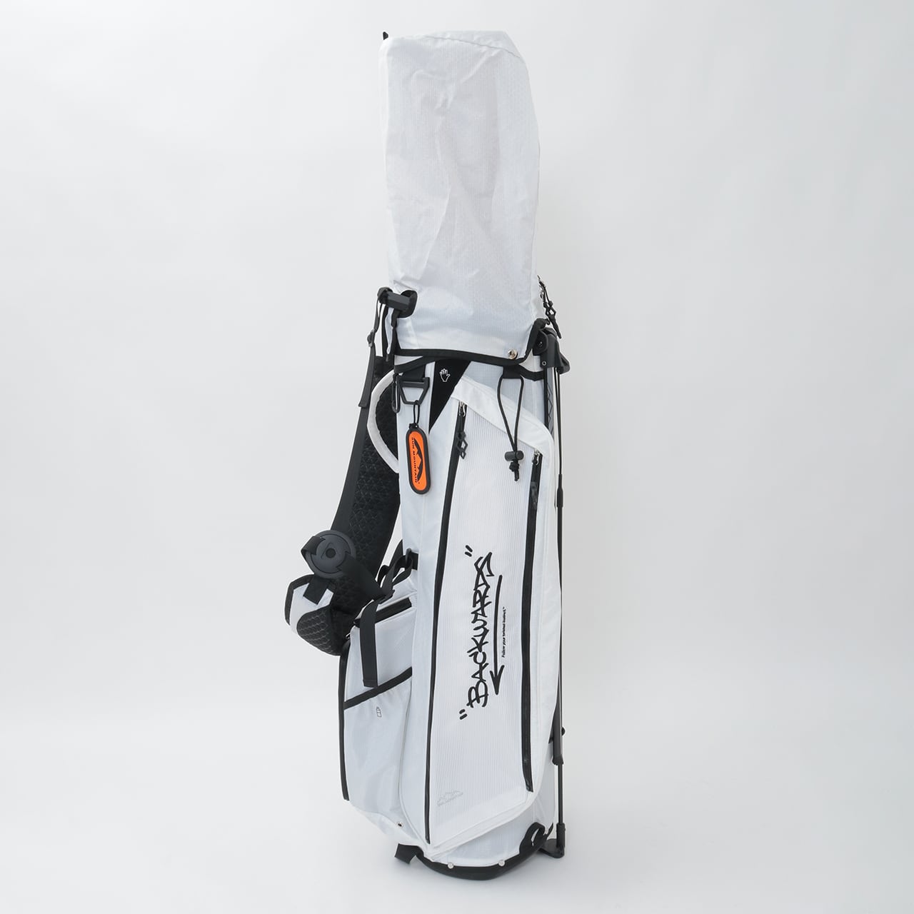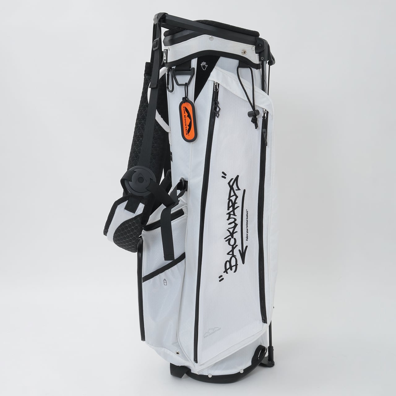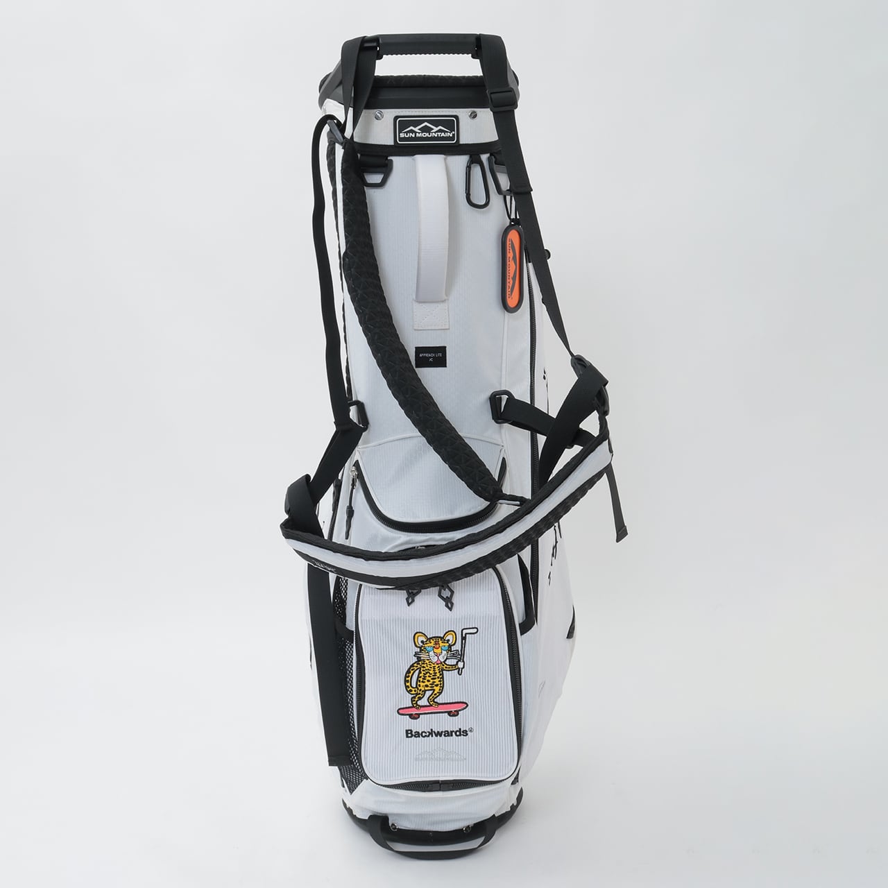 Backwards初のキャディバッグ。Sun Mountain製モデルにBackwardsのデザインを加えた1本です。高い耐久性と耐候性を備えながら、わずか2.2kgの軽さを実現した特別仕様です。