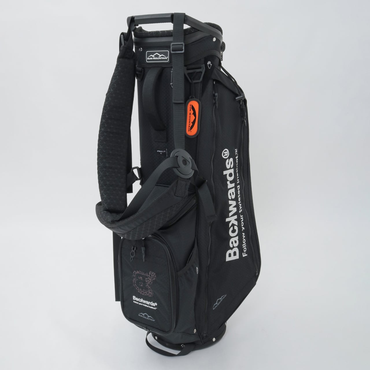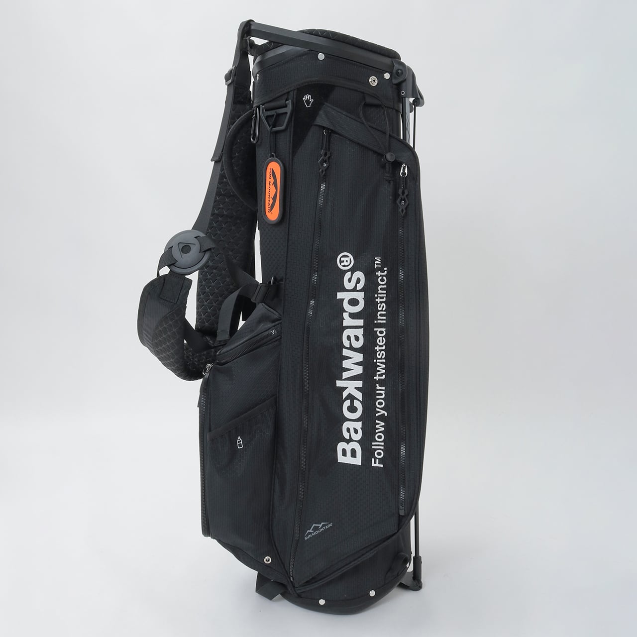 Backwards初のキャディバッグ。Sun Mountain製モデルにBackwardsのデザインを加えた1本です。高い耐久性と耐候性を備えながら、わずか2.2kgの軽さを実現した特別仕様です。