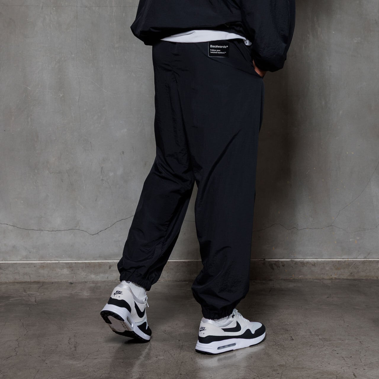 シワ加工を施した軽量ナイロンを使用し、コットンのような自然な風合いを表現したワイドパンツ。