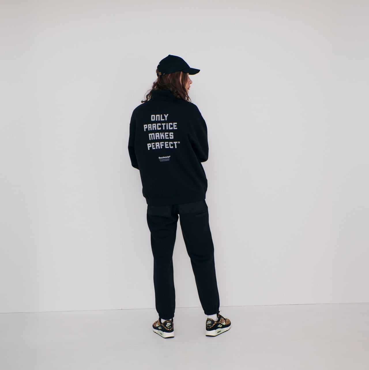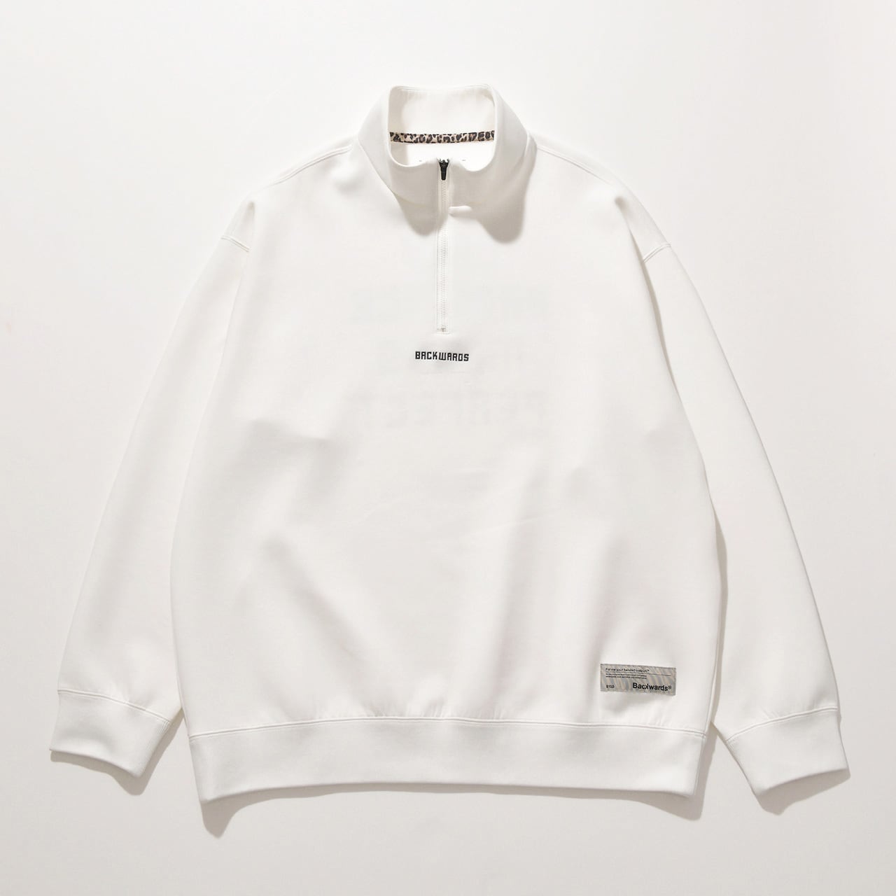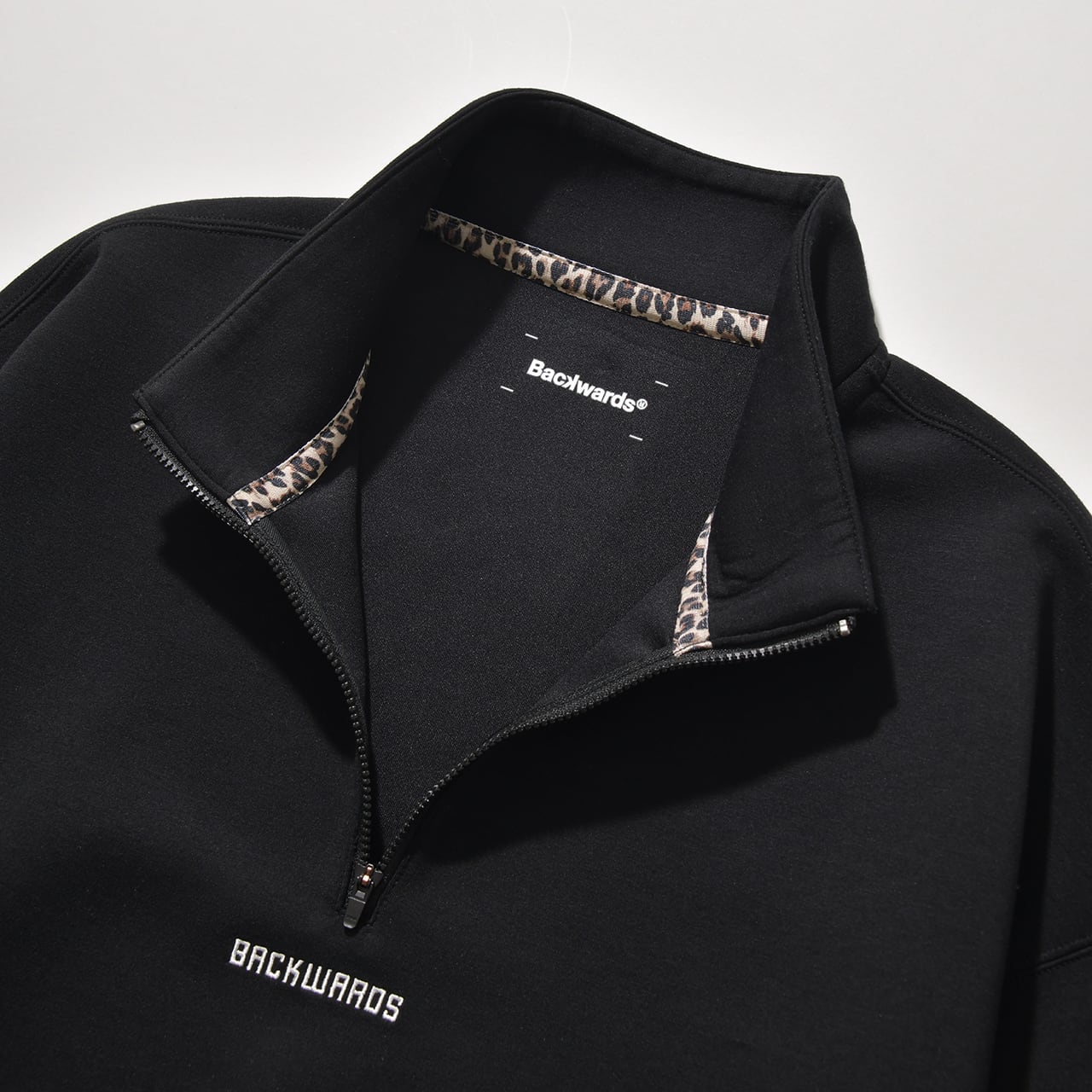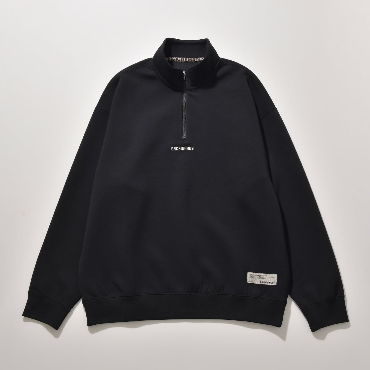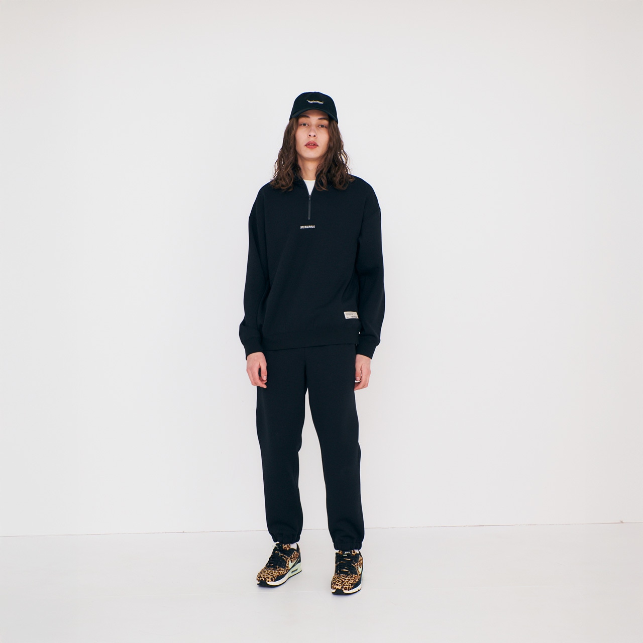 ・温度調整が容易なハーフジップ仕様のミドラー。首周りは緩めの設定ながらしっかり立ち上がるこだわりの衿型で、快適な着心地ときちんと感を両立。