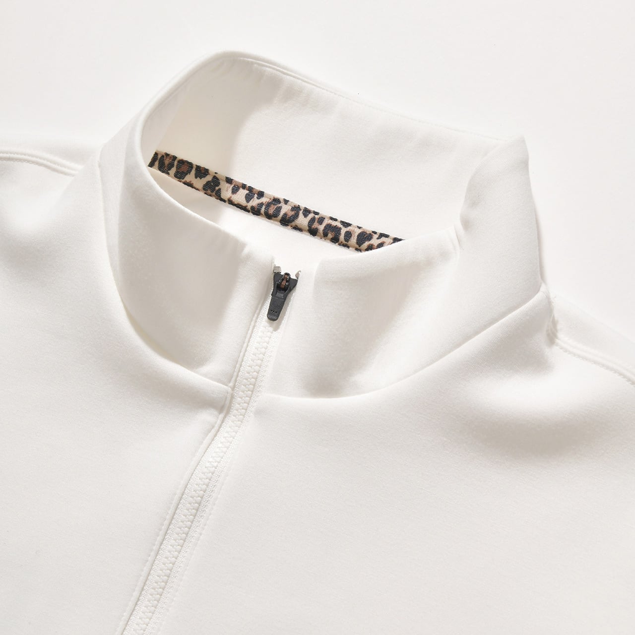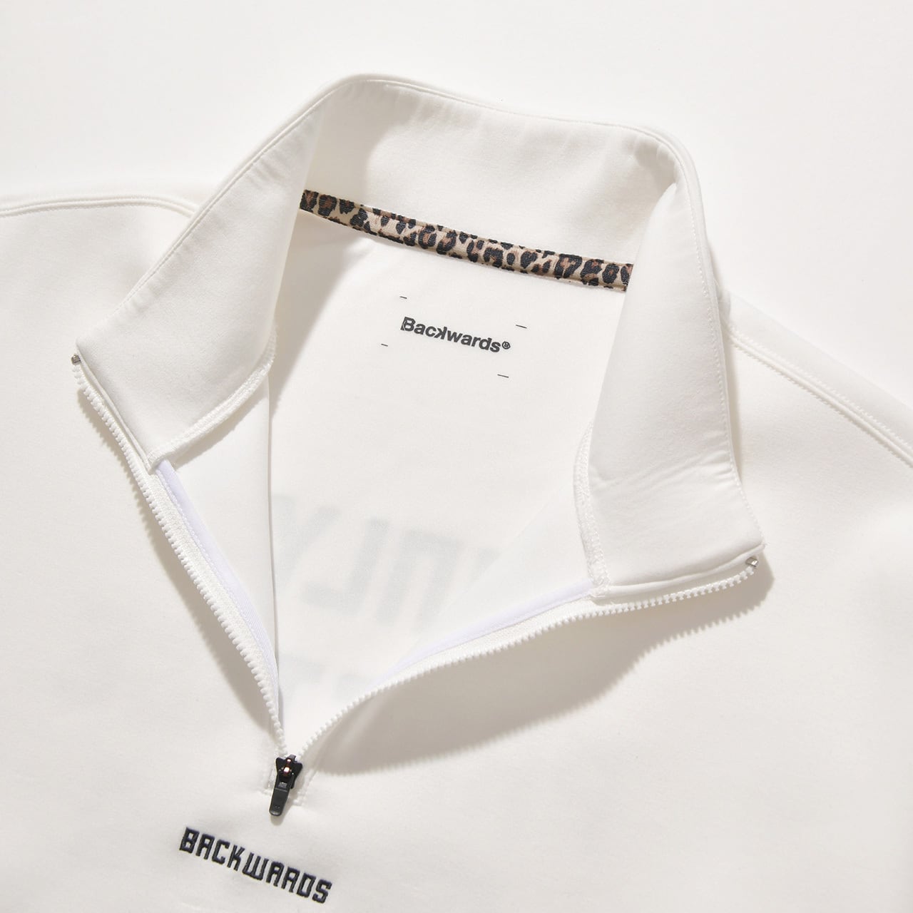 ふっくらと軽く弾力のある(スポンディッシュな)ダンボールニットを使用したハーフジップミドラー。UPF50+、速乾性、ストレッチ性を備え、ラウンド中の温度調整と動きやすさをサポートします。