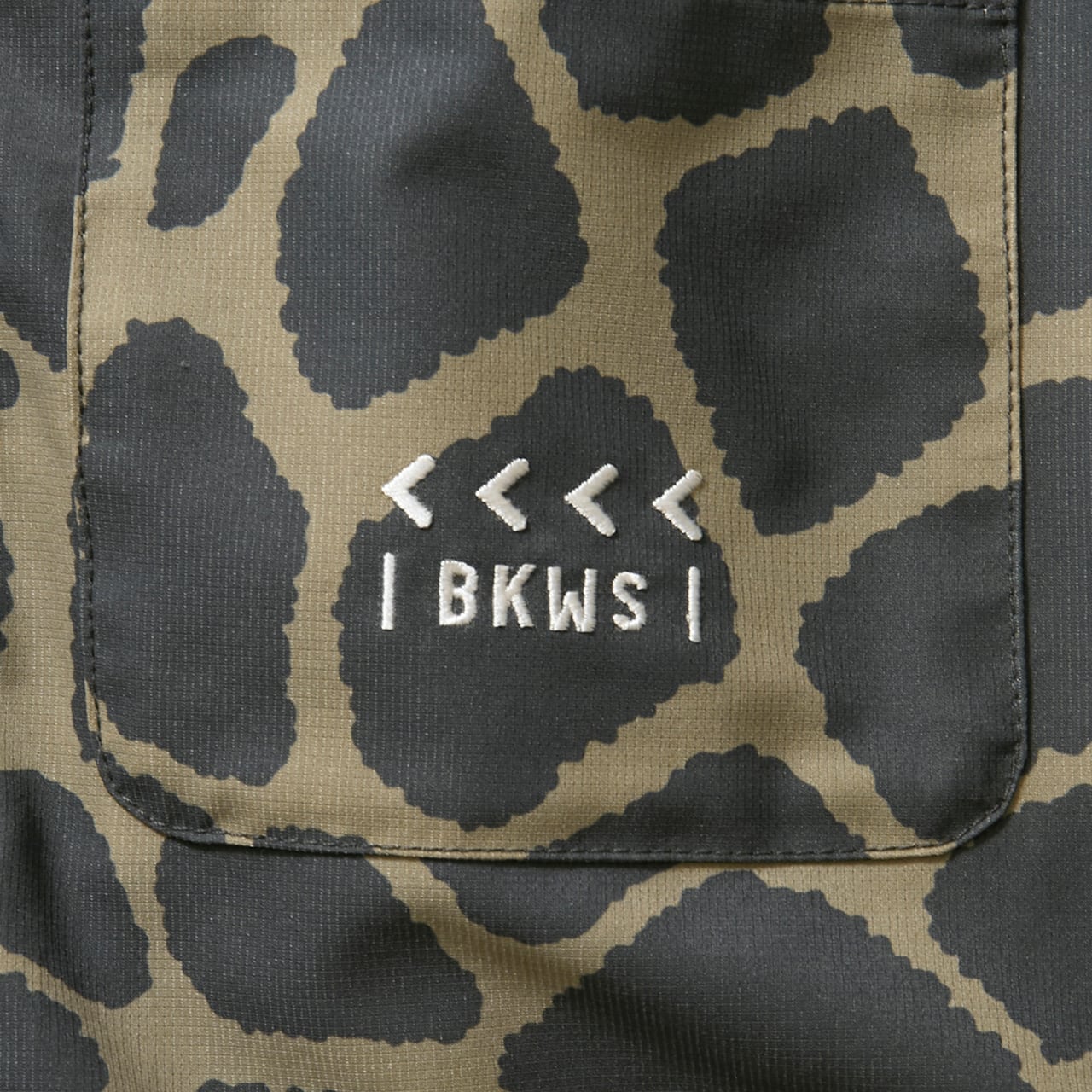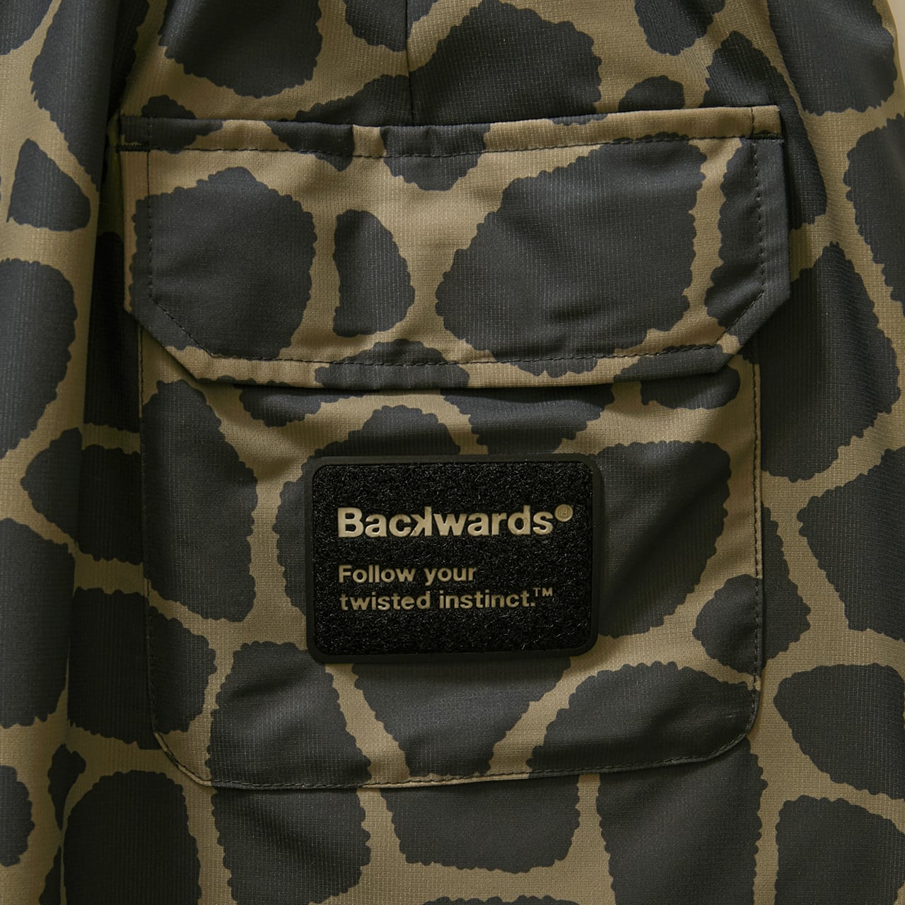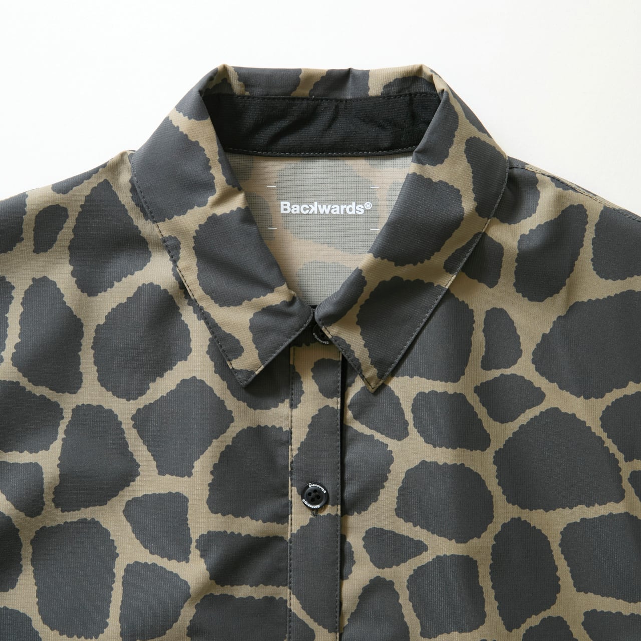 今季の新作としてジラフ柄を採用し、フロントにはインダストリアルロゴの刺繍を配置しています。