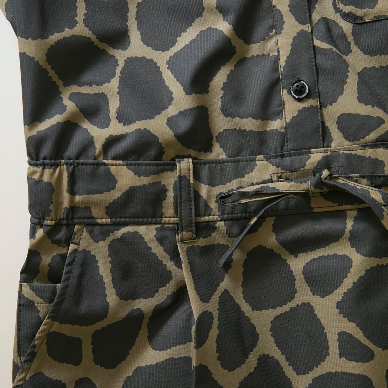 ・ジラフ柄はソフトな素材感を活かしたダイレクトインクジェットプリントで、主張がありながらもコーディネートに馴染みやすいシックな配色がポイント。