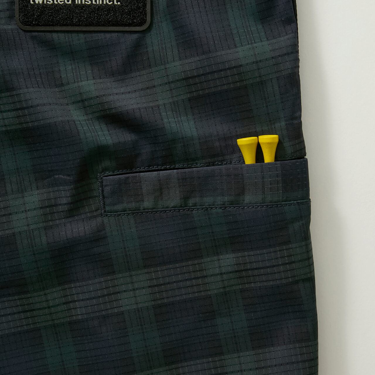 高通気構造「DOTAIR」を採用し、軽さと快適性を備えたリラックスショーツです。クラシックなブラックウォッチを落ち着いたトーンで仕上げ、上品さと機能性を両立。可動域を確保する設計や、距離計・Tee・スコアカードに対応した多機能ディティールを搭載し、ラウンド中の動きをスムーズに支える一本です。