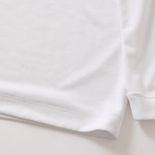 ポリエステル100%ながらも、コットンのようなナチュラルな肌触りと風合いを実現。カジュアルな太番手でドライな質感があり、度詰めに編み立てる事で適度な厚みとしっかりした手持ち感、透けにくさを付与。吸汗速乾性、UVカット性能(UPF40+、遮蔽率97%)に加え、汗による肌への張り付きを軽減する表面感により、快適なラウンドをサポート。