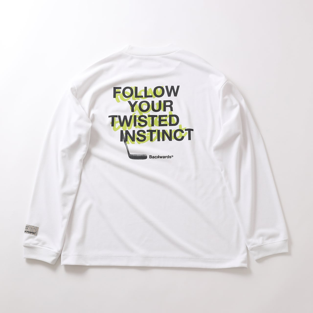 抜け感を醸し出すこだわりの3.5cmネックに、ゆったりシルエットながら、スイングを邪魔しない袖丈バランスは、カジュアルなスタイルの中にもゴルフプレーを考えた一枚。クリーンなタイポグラフィにタギング的なスクリプトとパターのグラフィックが斬新な80年代ムード溢れるデザインです。