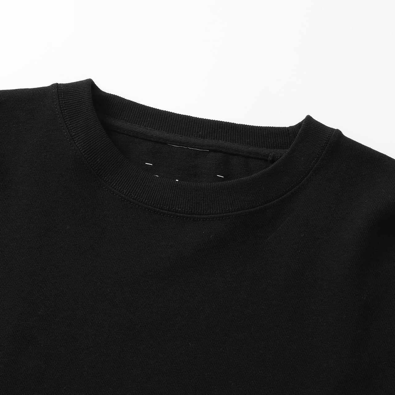 ブランドロゴとステイトメントを、ボディ同色のハイロフトフロッキープリントでモダンに表現。ヴィンテージによくみられる筒状で編み立てる丸胴仕様により、縫い代が脇にないため着心地良い仕上がりになっています。また、度詰の衿リブは2本針ステッチでタフな仕上がりに。抜け感あるリラックスシルエット。