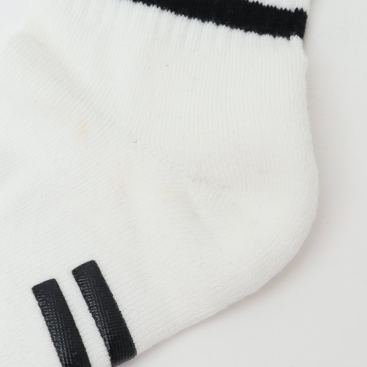 ざっくりしたリブをベースに、上足は天竺でフラットに、底足とヒール部分にはボリュームあるパイルで切り替えてクッション性を高め、中足部にはアーチサポートリブを入れることで疲労を軽減しています。