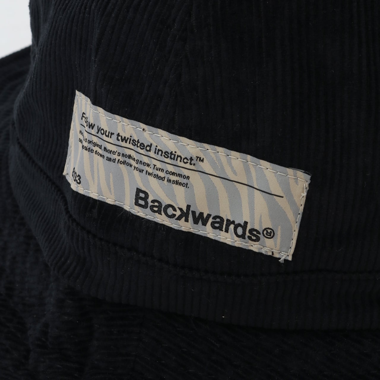 左サイドにはタギングスクリプトロゴを刺繍、右サイドにはブランドアウトラベルをオン。