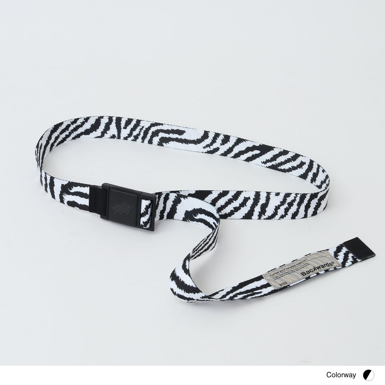 ソリッドなコーディネートにワンポイント使いでアニマルパターンが映えるテープベルト。
