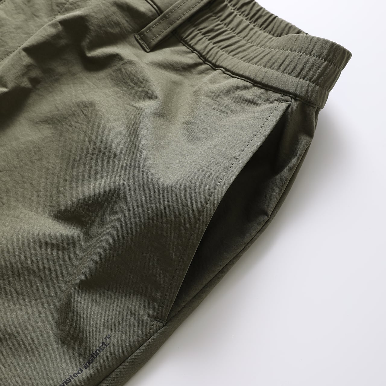 ・ウエストにはゴムシャーリングとスピンドルを内蔵し、ストレスのない快適な穿き心地を実現。