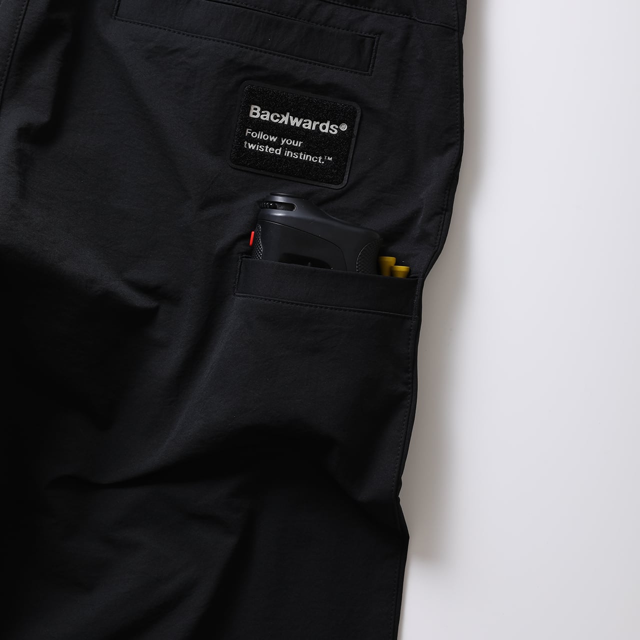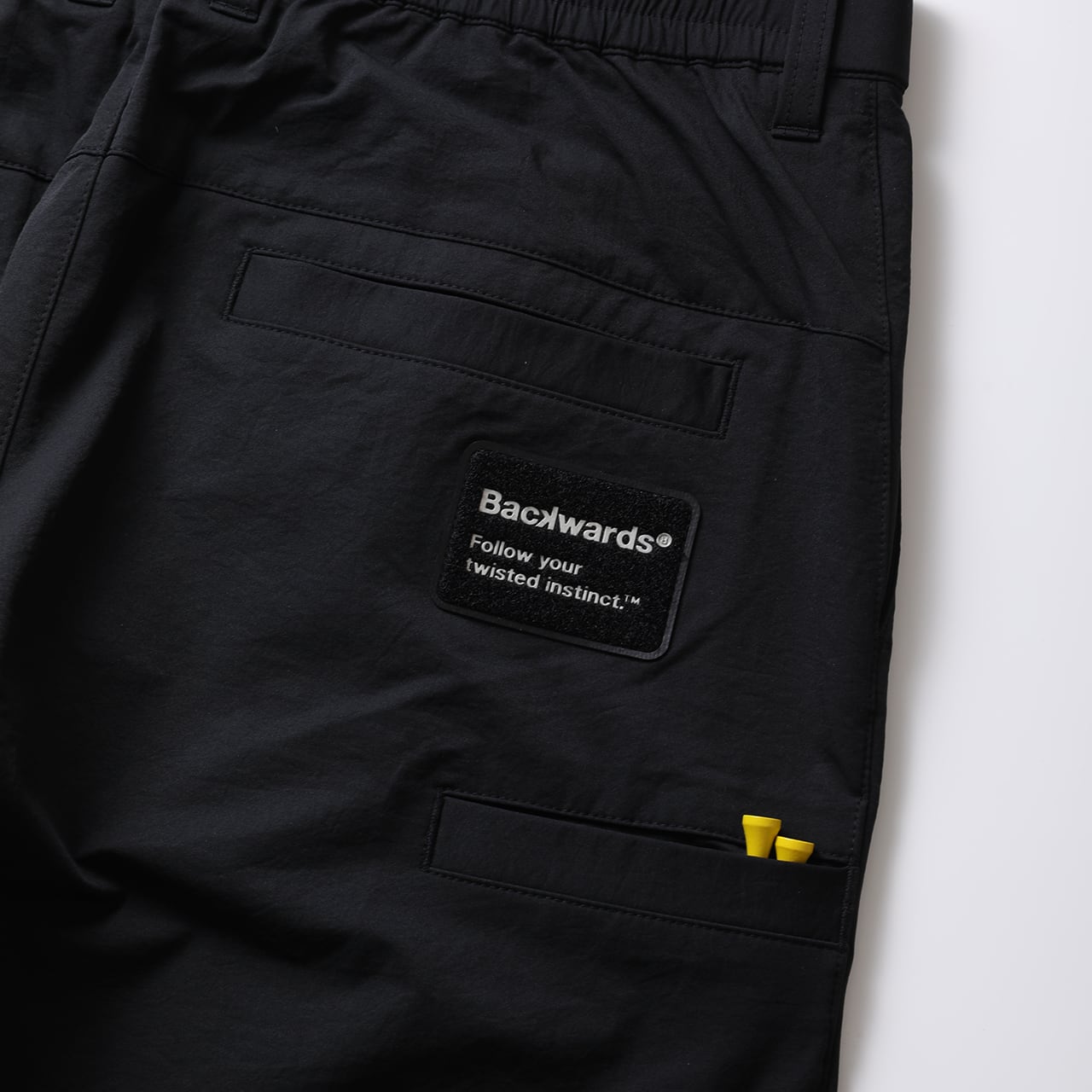 ・グローブホルダーとして機能するベルクロワッペンをバックポケットに配置。